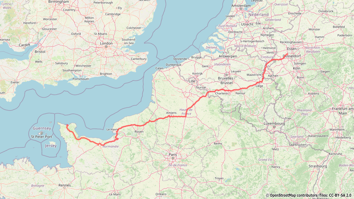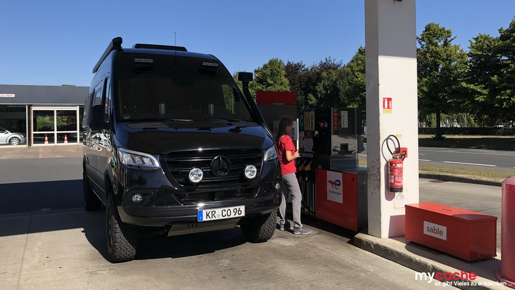 Nach einem ausgiebigen Frühstück und einem Abstecher zur öffentlichen Waage, die uns ein Startgewicht von 3700 kg bescheinigt, geht es über die Niederlande, Belgien nach Frankreich bis nach Bretteville in der Normandie. Nach dem Abendessen loggen wir noch den Geocache direkt an unserem Stellplatz. Dann betten wir uns in unser gemütliches Rolling Home zur Nachtruhe.