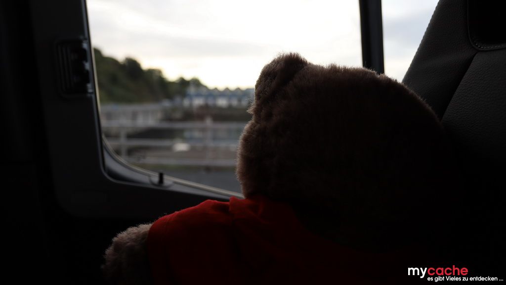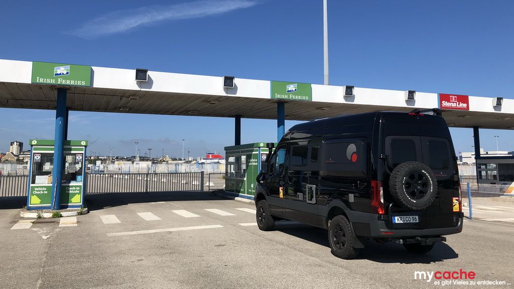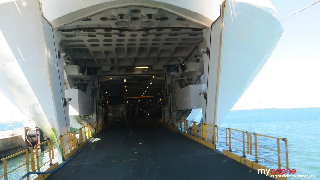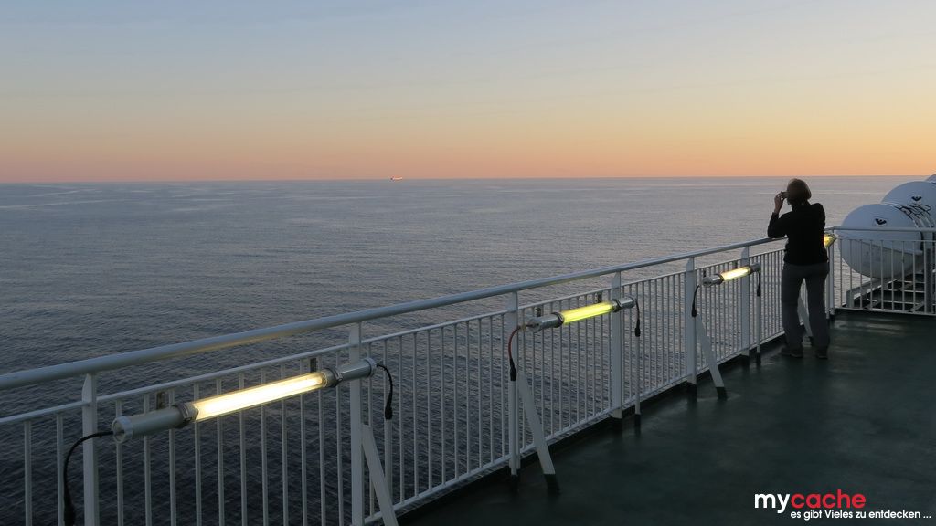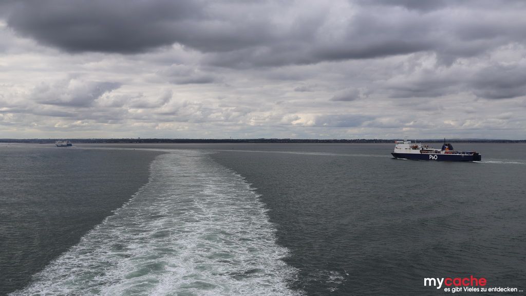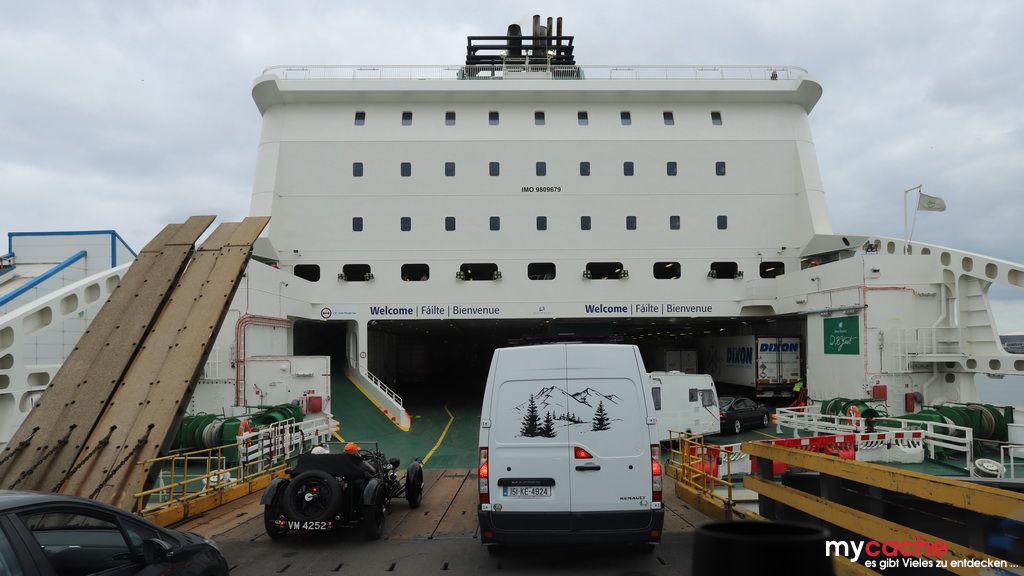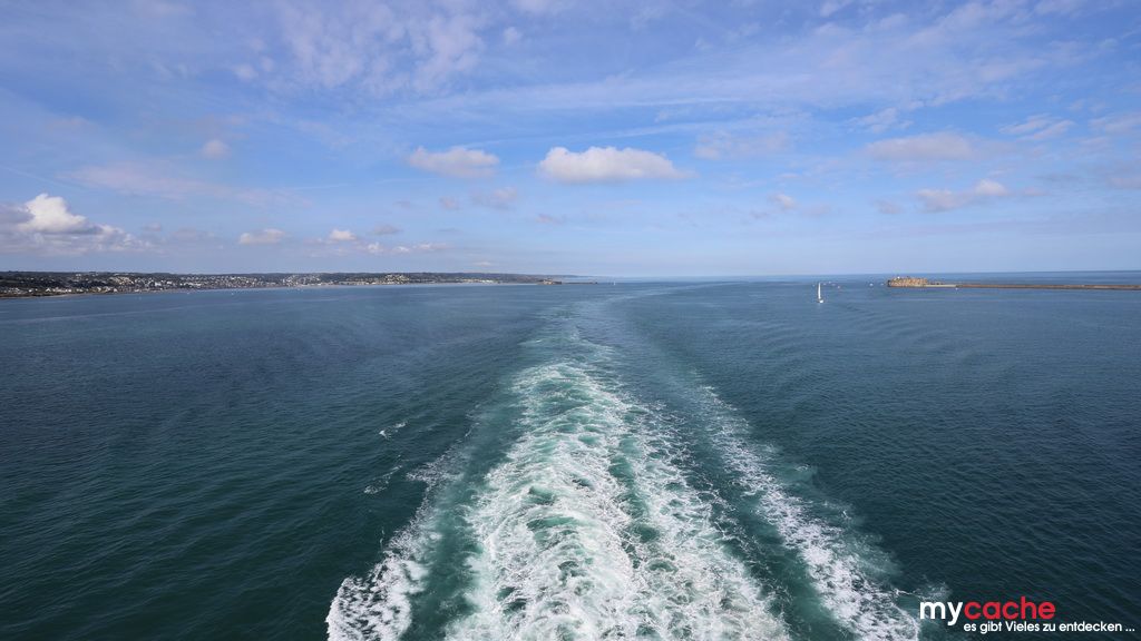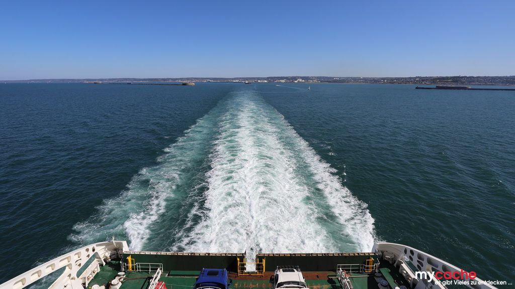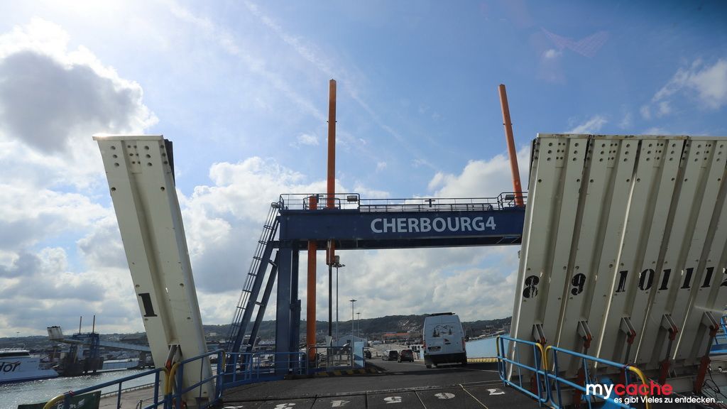 Nach einer ruhigen Nacht starten wir unsere zweite Etappe der Anreise nach Cherbourg zum Fähranleger nach Irland. Wir treffen als erster am noch geschlossenen CheckIn ein und überbrücken die verbleibende Zeit bis zur Einschiffung mit dem Ekunden des Hafens und der Aufspürung einiger Geocaches. Wir verlassen das Festland bei herrlich sonnigem Wetter und die Vorhersage für die Überfahrt verspricht eine ruhige See.