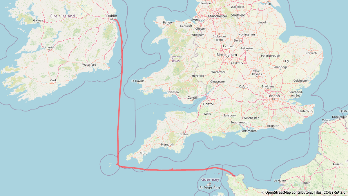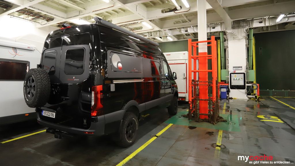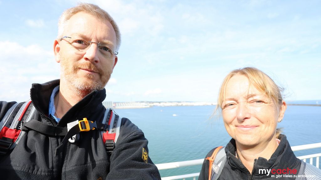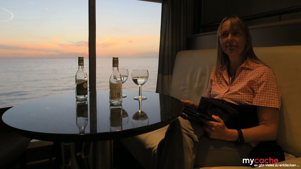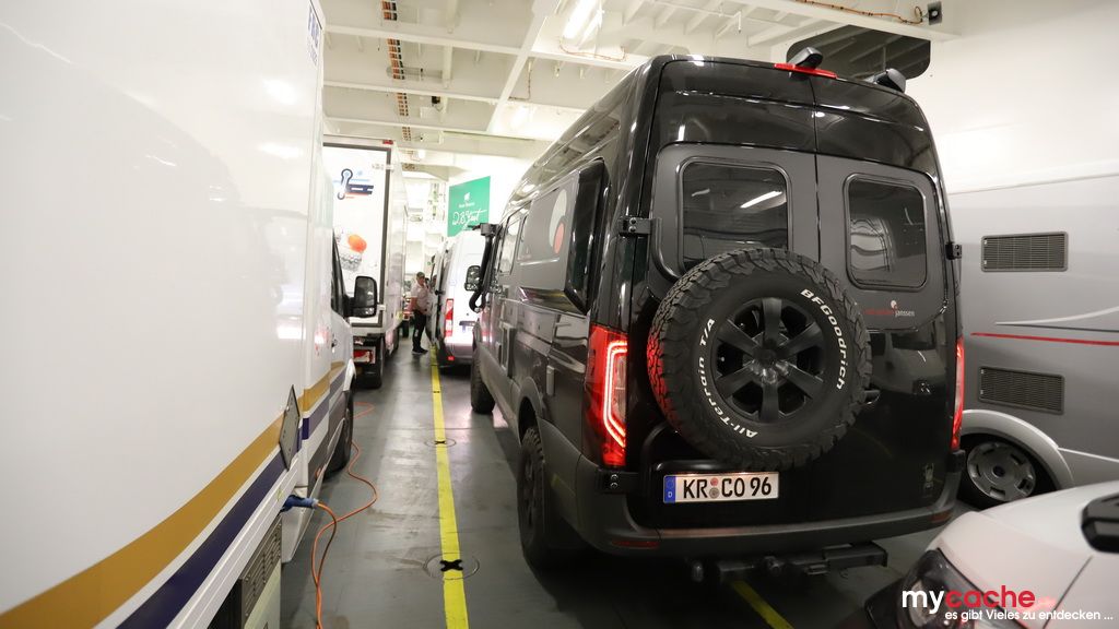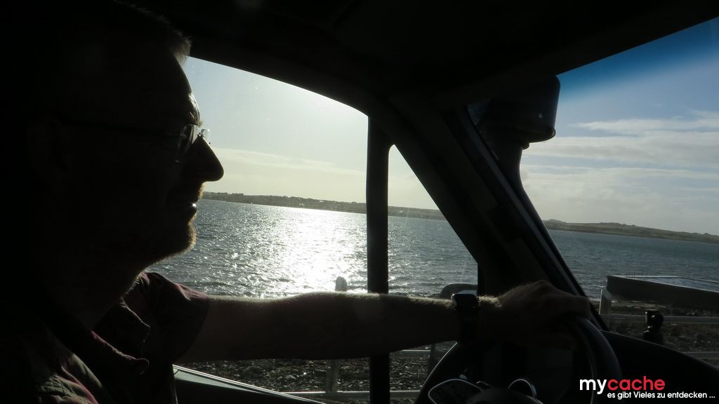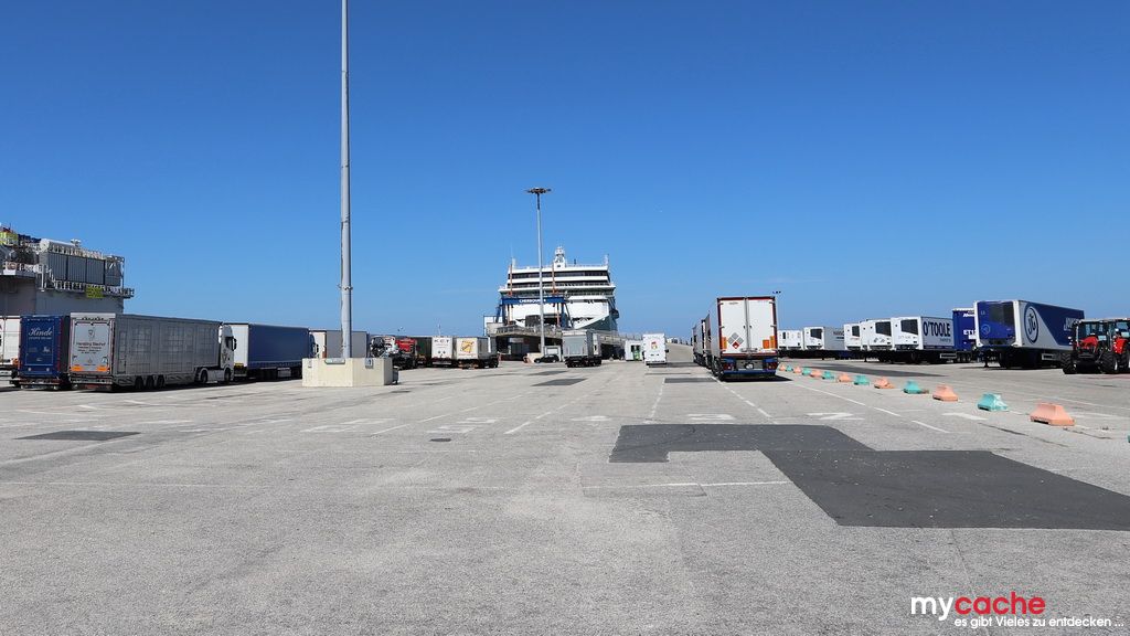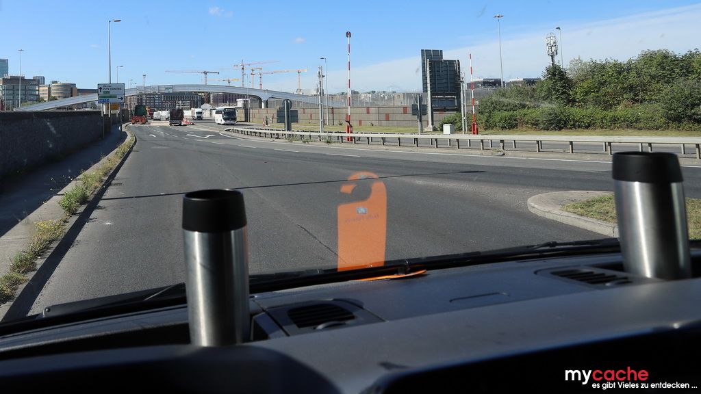 Nach einer ruhigen Nacht starten wir unsere zweite Etappe der Anreise nach Cherbourg zum Fähranleger nach Irland. Wir treffen als erster am noch geschlossenen CheckIn ein und überbrücken die verbleibende Zeit bis zur Einschiffung mit dem Ekunden des Hafens und der Aufspürung einiger Geocaches. Wir verlassen das Festland bei herrlich sonnigem Wetter und die Vorhersage für die Überfahrt verspricht eine ruhige See.