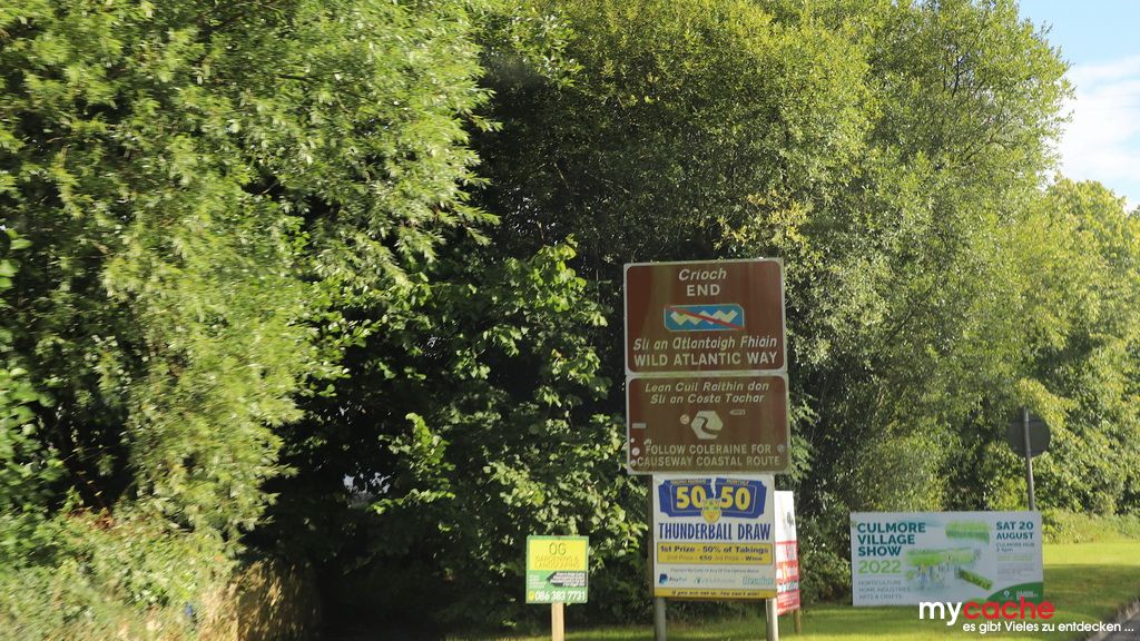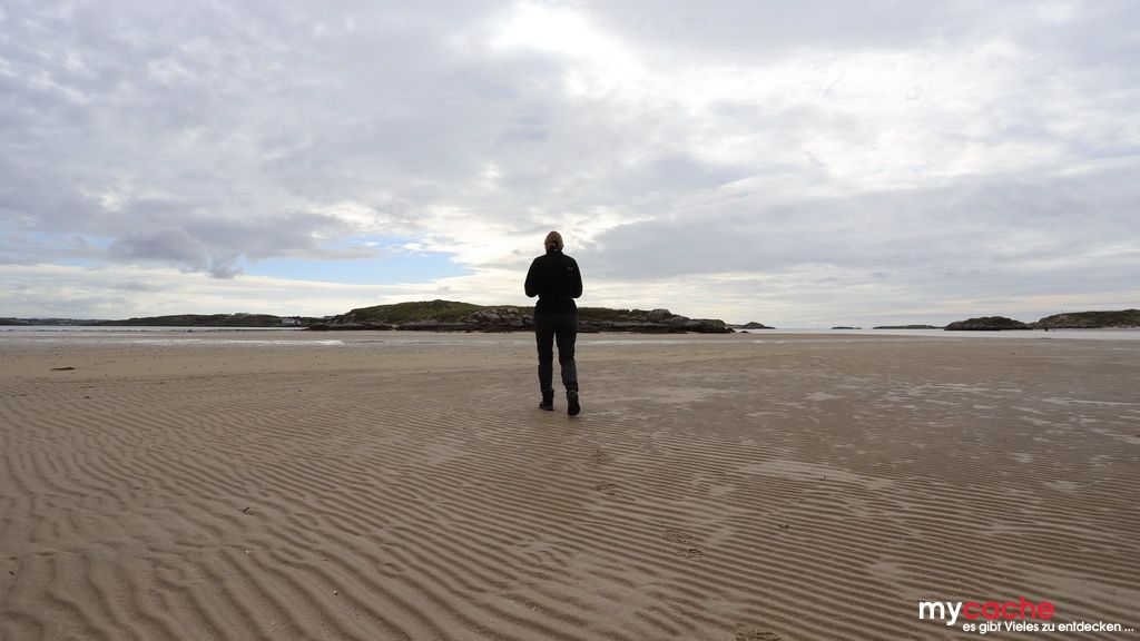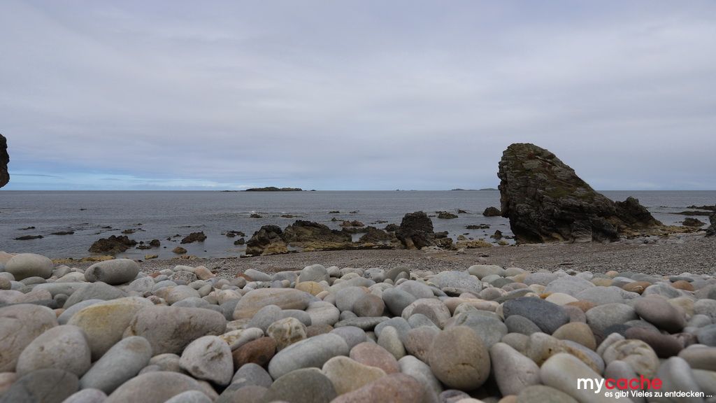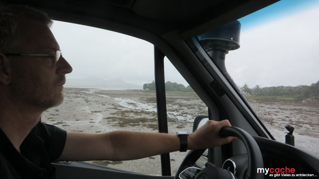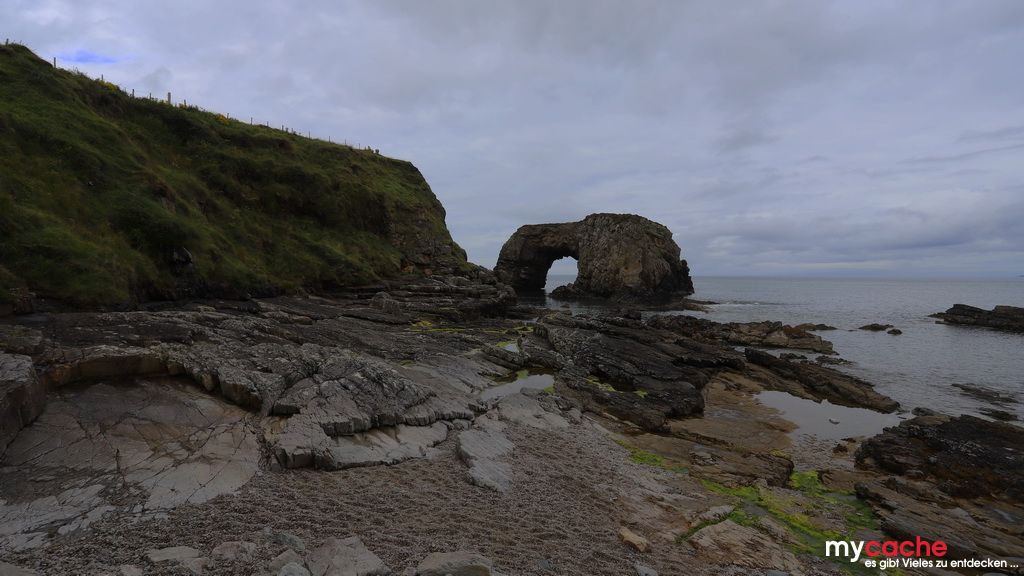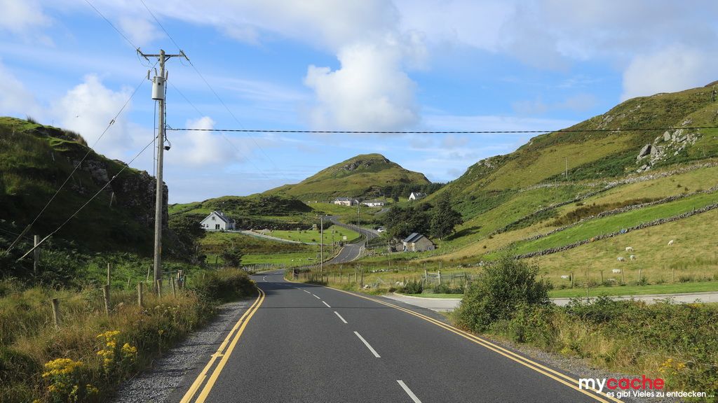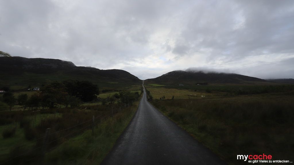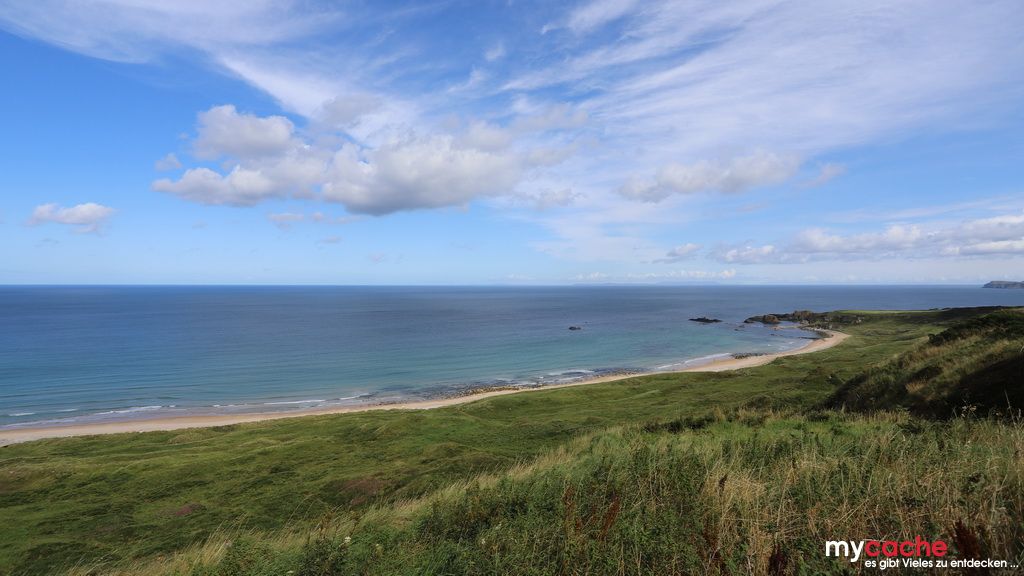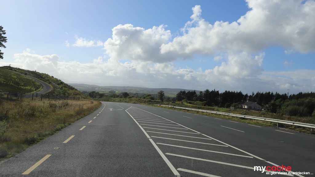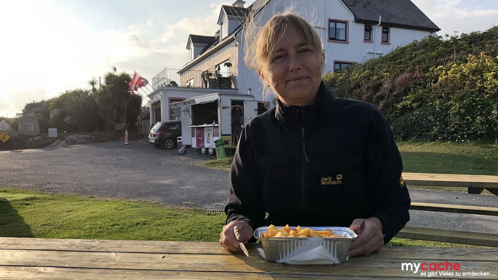 Unser erstes Ziel heute sind die Wasserfälle von Glenevin. Diese fallen jedoch sprichwörtlich ins Wasser, da es bei unserem Eintreffen anfängt in Strömen zu regnen. Moralisch stellen wir uns auf einen verregneten Tag ein. Am Malin Head angekommen hört es auf zu regnen und wir können den nördlichsten Geocache Irlands erfolgreich heben und uns in Logbuch eintragen. Die Sonne vertreibt die dunklen Wolken als wir am Wee House of Malin mit einem einsamem Strand mit vielen Felsen und Kieselsteinen eintreffen. Auf den letzten Kilometern des WAW (N) passieren wir noch einen sehenswerten Sandstrand, bevor es über kleine Nebenstraßen zum Ende des Wild Atlantic Way kurz vor der Grenze zu Nothern Irland (GB) geht. Nach dem unsichtbaren Grenzübertritt fällt zuerst die Änderung der Beschilderung in Meilen auf. Die Tankstellen haben einen vermeintlich günstigeren Preis, jedoch sind es nun £. Eine weitere Kuriosität sind die mit Ampeln ausgestatteten Kreisverkehre. Wir beenden den Tag mit echt englischen Fish & Cips in Port Rush..