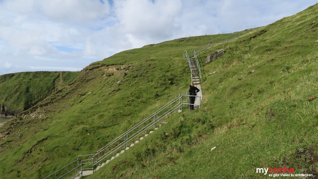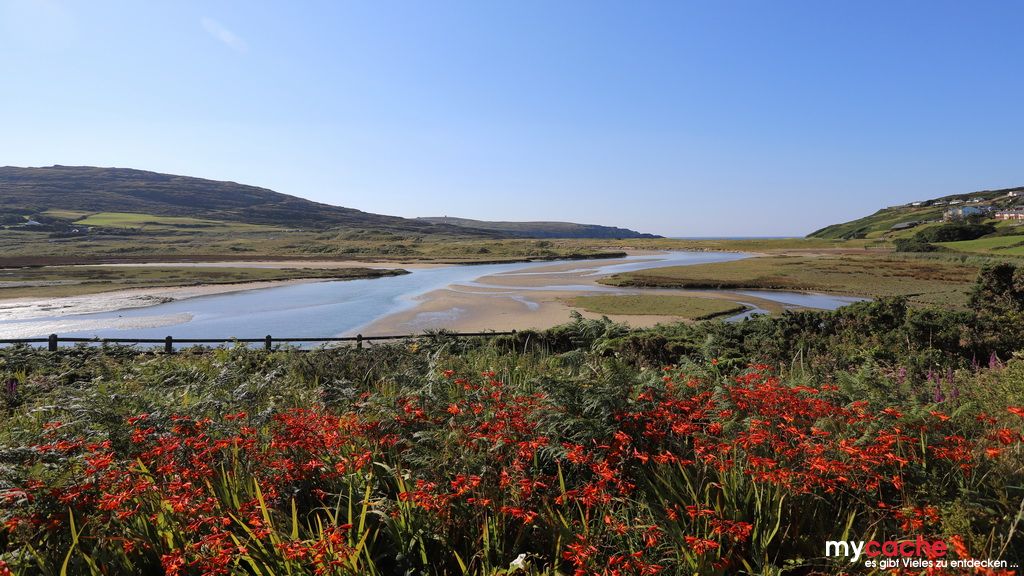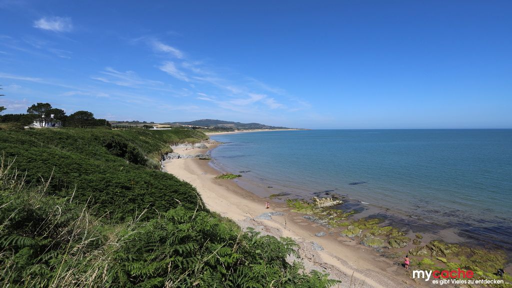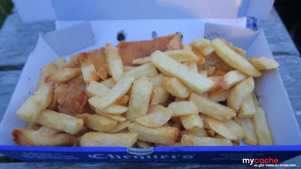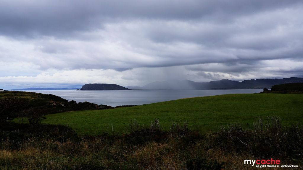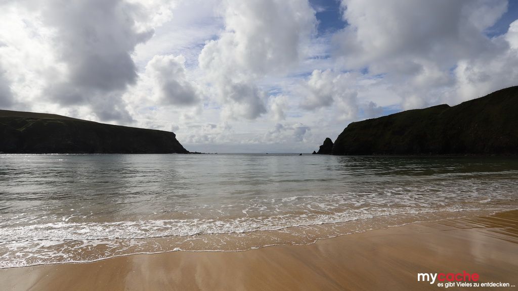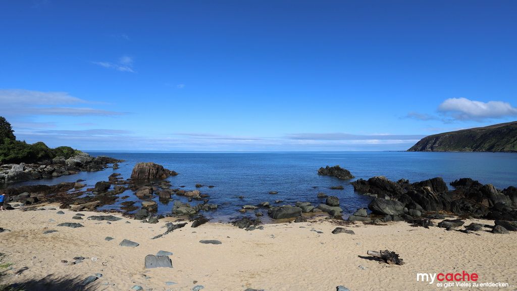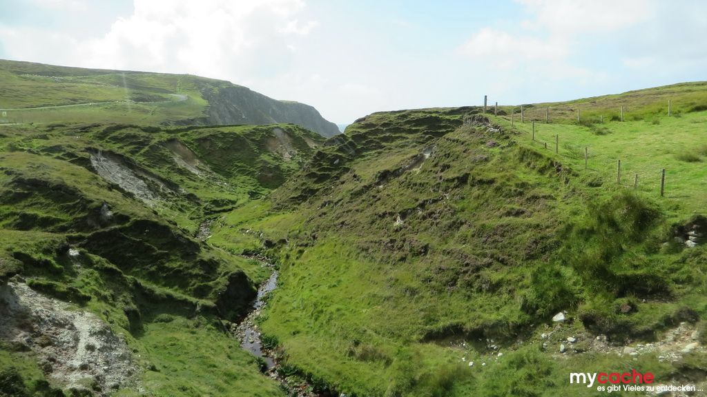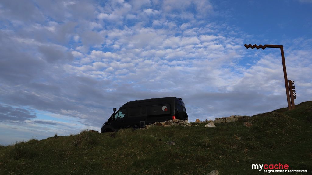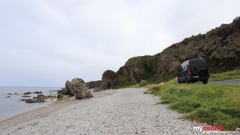 Unser erstes Ziel heute sind die Wasserfälle von Glenevin. Diese fallen jedoch sprichwörtlich ins Wasser, da es bei unserem Eintreffen anfängt in Strömen zu regnen. Moralisch stellen wir uns auf einen verregneten Tag ein. Am Malin Head angekommen hört es auf zu regnen und wir können den nördlichsten Geocache Irlands erfolgreich heben und uns in Logbuch eintragen. Die Sonne vertreibt die dunklen Wolken als wir am Wee House of Malin mit einem einsamem Strand mit vielen Felsen und Kieselsteinen eintreffen. Auf den letzten Kilometern des WAW (N) passieren wir noch einen sehenswerten Sandstrand, bevor es über kleine Nebenstraßen zum Ende des Wild Atlantic Way kurz vor der Grenze zu Nothern Irland (GB) geht. Nach dem unsichtbaren Grenzübertritt fällt zuerst die Änderung der Beschilderung in Meilen auf. Die Tankstellen haben einen vermeintlich günstigeren Preis, jedoch sind es nun £. Eine weitere Kuriosität sind die mit Ampeln ausgestatteten Kreisverkehre. Wir beenden den Tag mit echt englischen Fish & Cips in Port Rush..