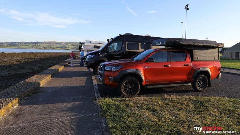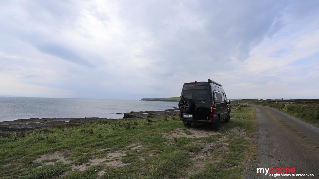 Nach dem gemütlichen Frühstück brechen wir auf zum südöstlichsten Punkt von Irland, beim ersten Versuch werden wir von einer Höhenbegrenzung aufgehalten. Wir finden jedoch noch eine andere Piste, die uns zu dem Ziel führt. Wir erreichen die Klippe und lassen unseren Blick über Meer und Strand schweifen. Auf dem Weg hierhin sind wir am Lady‘s Lake vorbeigekommen. Auf dem Rückweg rasten wir hier zum Nachmittags Kaffee. Über einen sehr engen und mit reichlich Vegetation versehenem Track (eine offizielle Straße) gelangen wir zu einem höhergelegenen Aussichtspunkt. Hier befindet sich, wie sollte es auch anders sein, ein Geocache. Es geht noch ein Stück weiter entlang der Küstenstraße bis nach Dungarvan. Hier lassen wir den Tag mit der Erkundung des Klosters und der Hafenpromenade ausklingen.