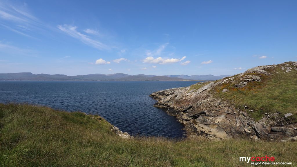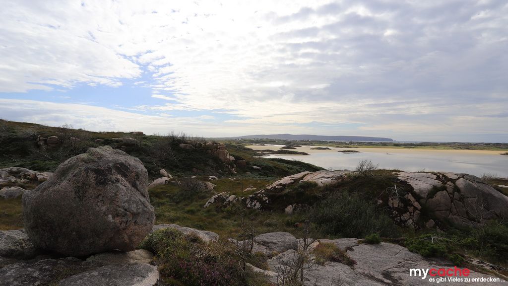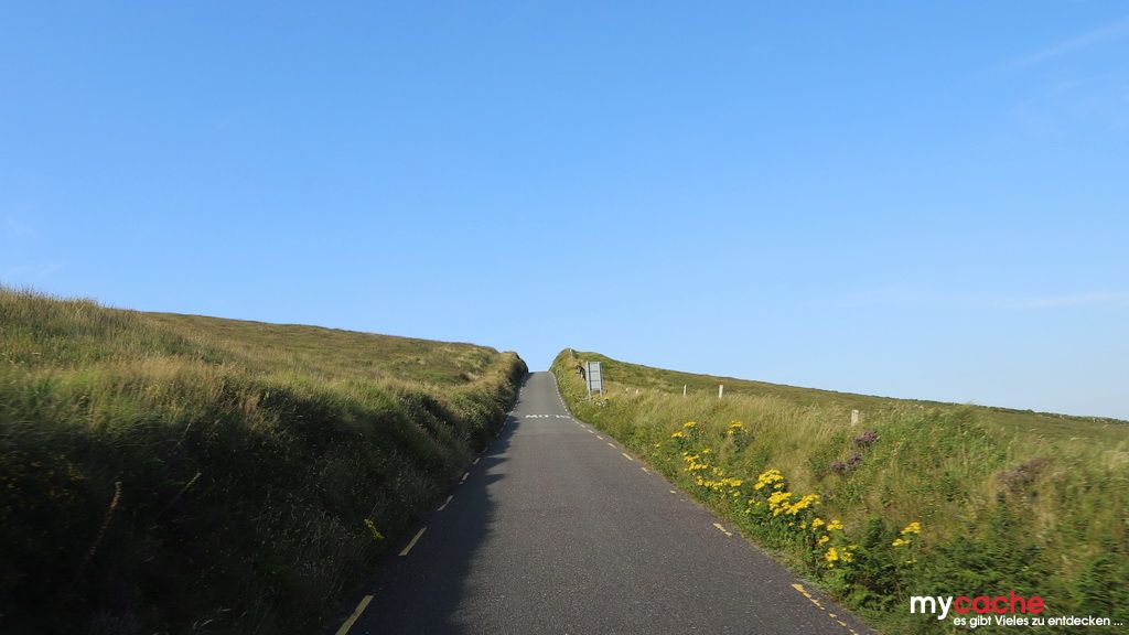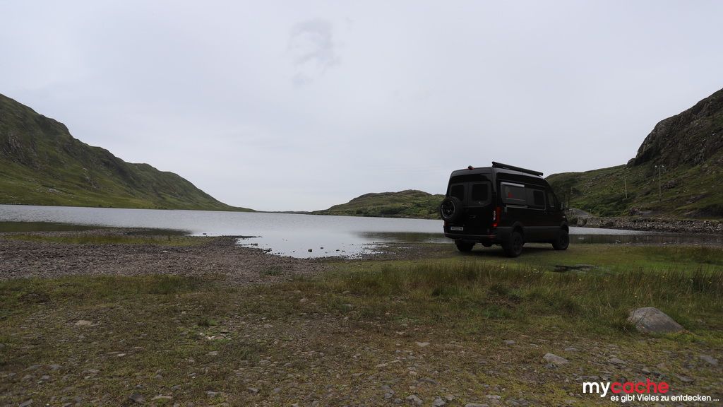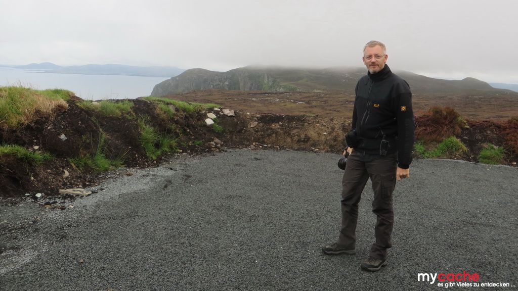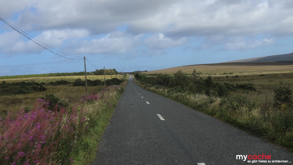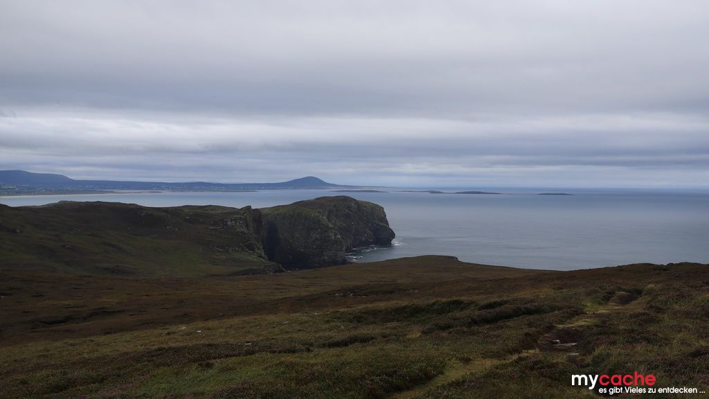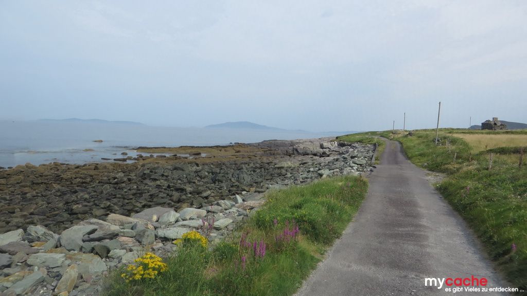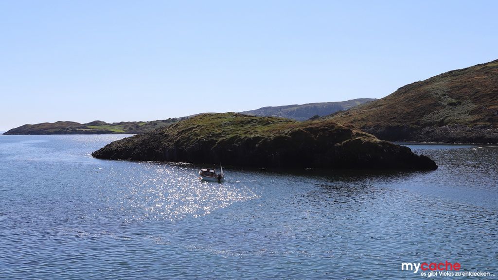 Heute hat der Track Ähnlichkeiten mit einer Achterbahn. Wir befahren schmale kurvenreiche einspurige Tracks mit Blind Hills und kleinen Brücken. Am Strand von Bun Beag können wir aufgrund der Ebbe zur vorgelagerten Insel wandern und dort einen Geocache loggen. Auf dem Rückweg erkunden wir das Schiffswrack eines in den 70er Jahren gestrandeten Holzboots. Die Nacht verbringen wir am Horn Head.