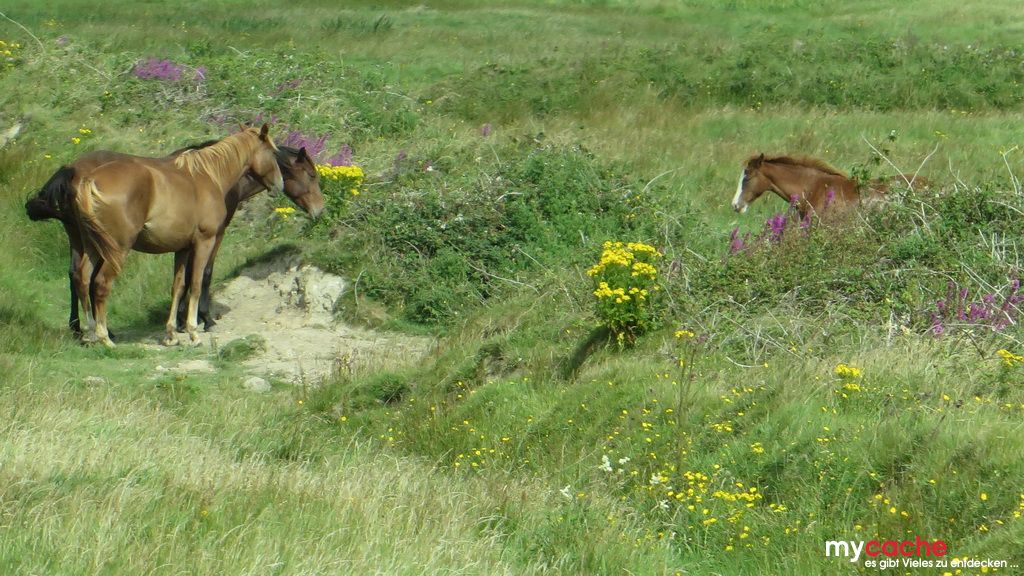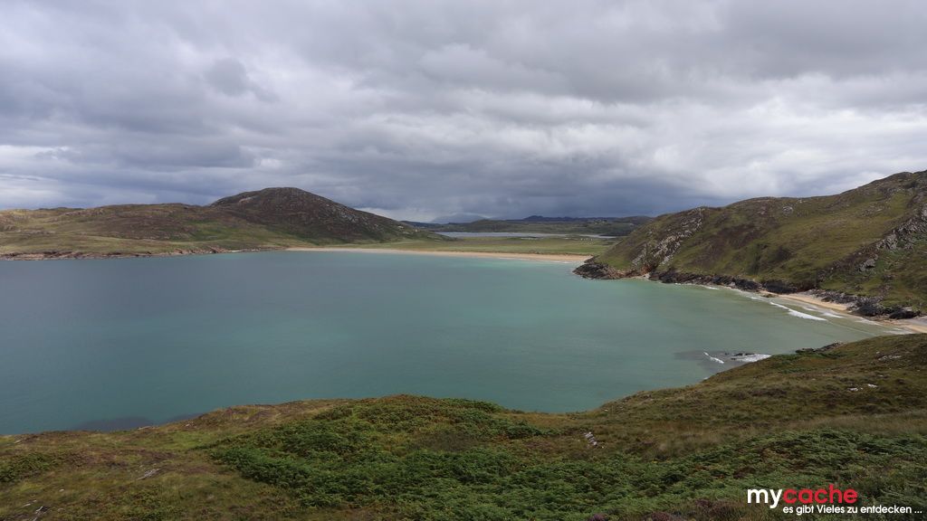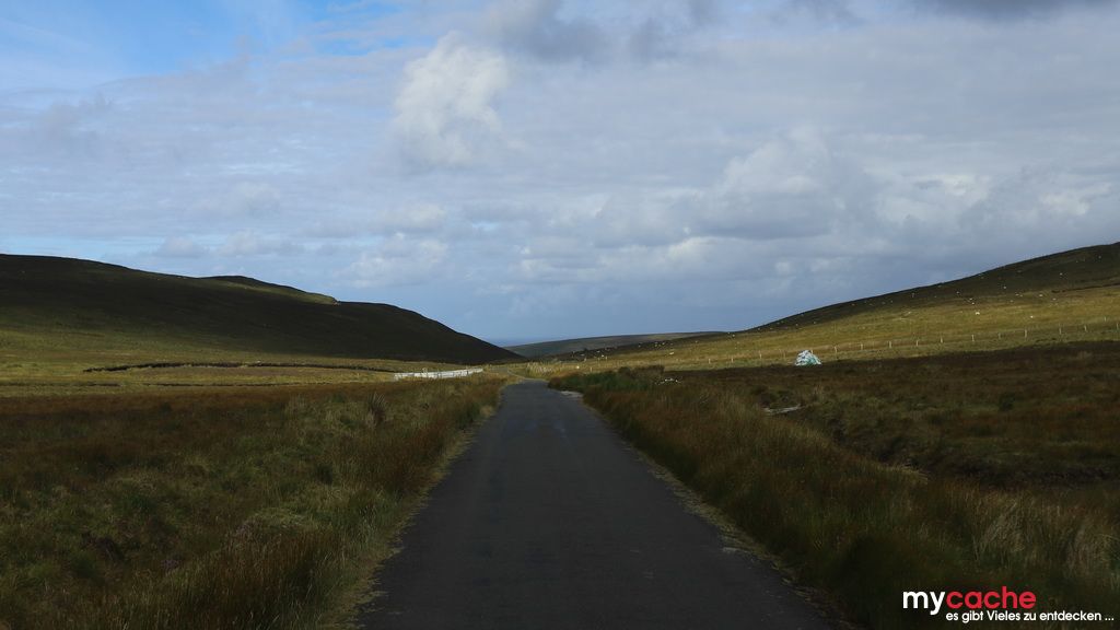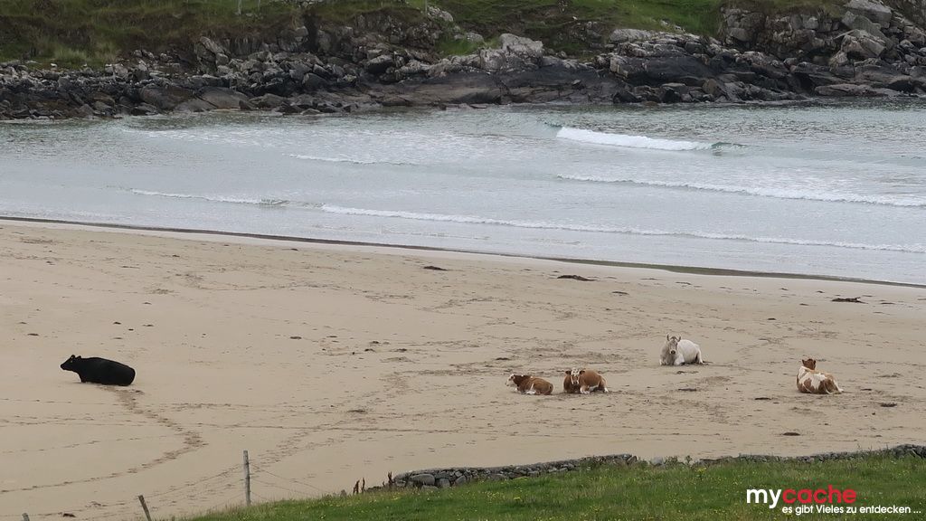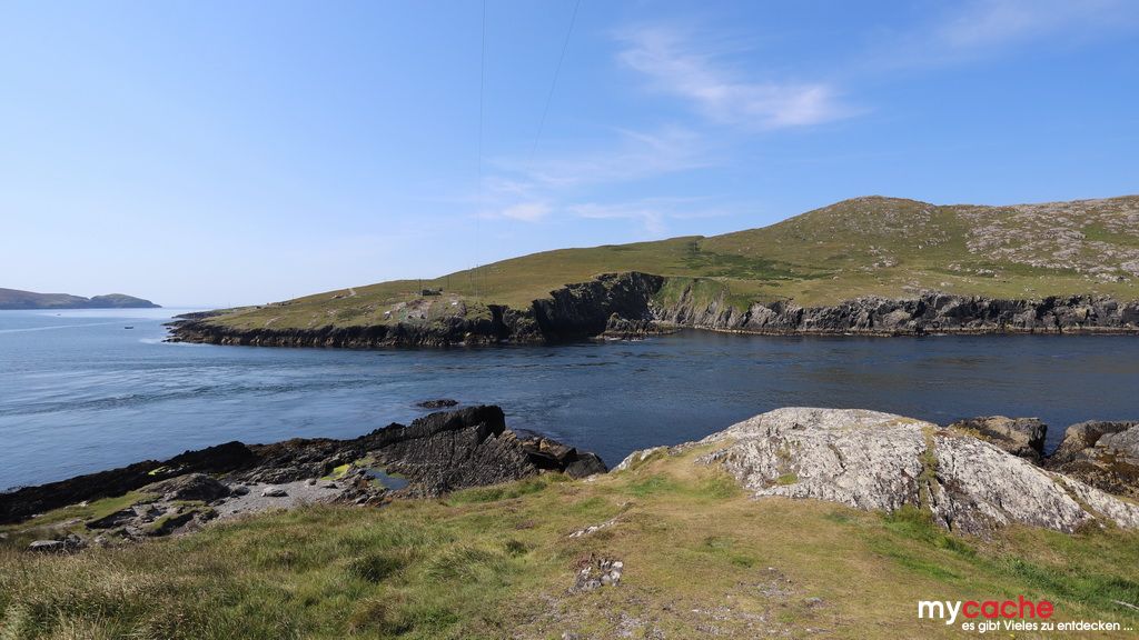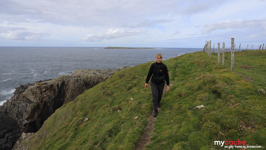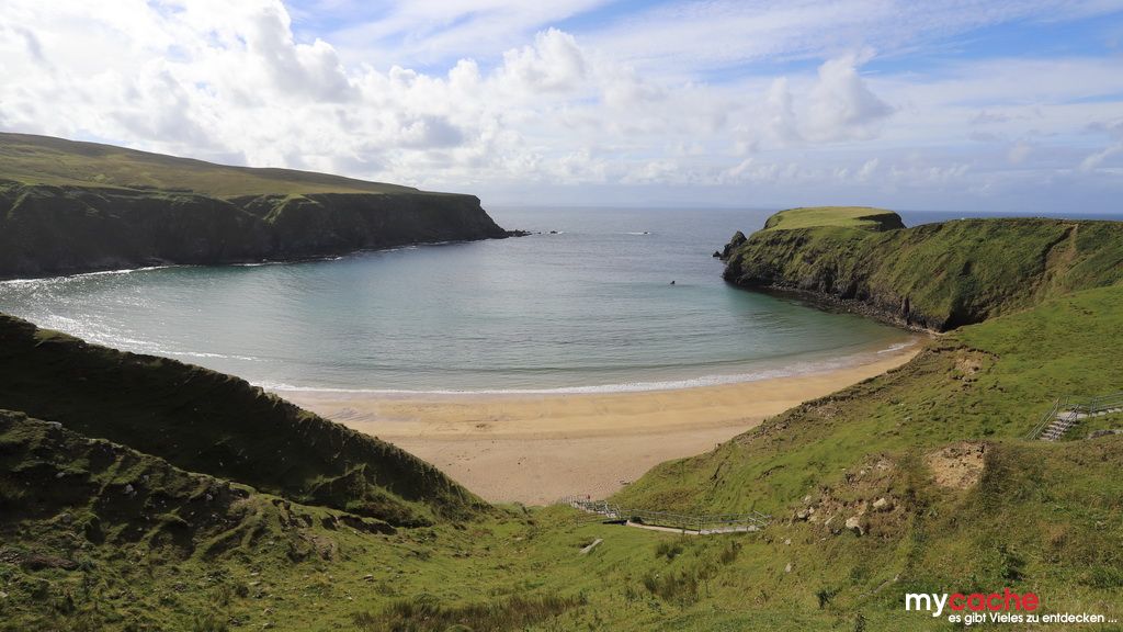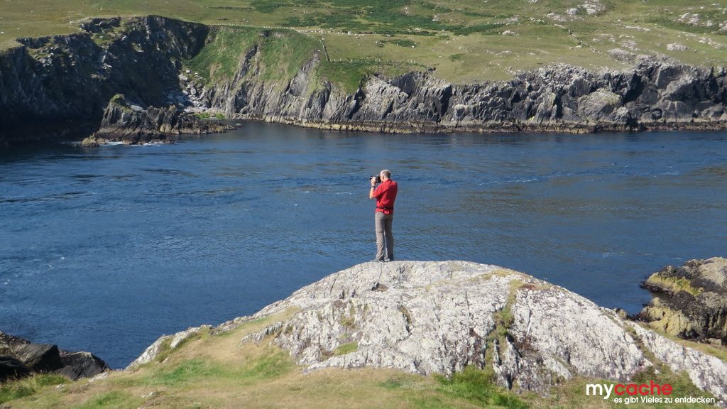Heute hat der Track Ähnlichkeiten mit einer Achterbahn. Wir befahren schmale kurvenreiche einspurige Tracks mit Blind Hills und kleinen Brücken. Am Strand von Bun Beag können wir aufgrund der Ebbe zur vorgelagerten Insel wandern und dort einen Geocache loggen. Auf dem Rückweg erkunden wir das Schiffswrack eines in den 70er Jahren gestrandeten Holzboots. Die Nacht verbringen wir am Horn Head.