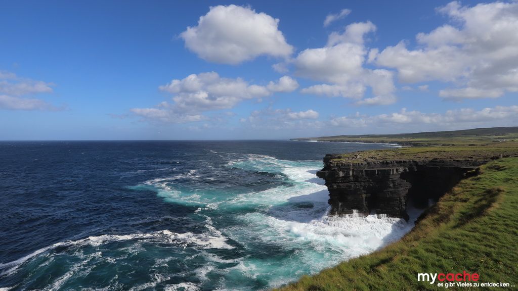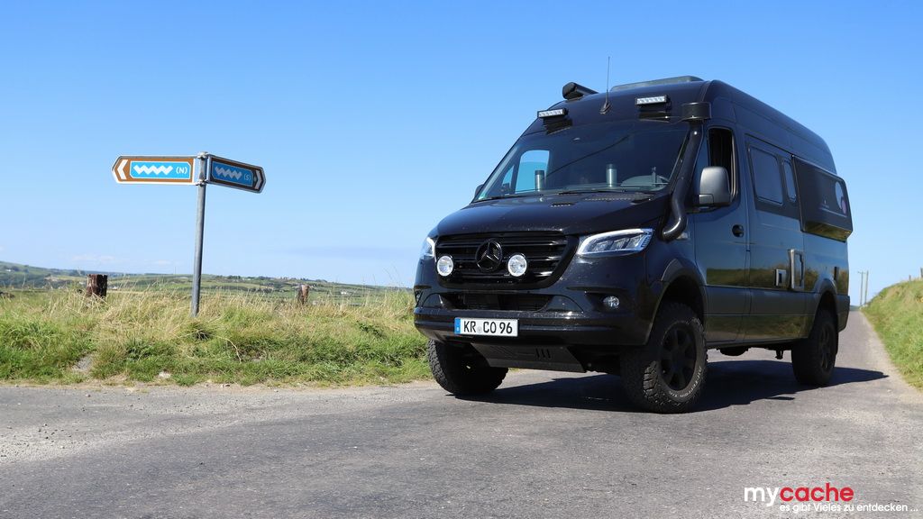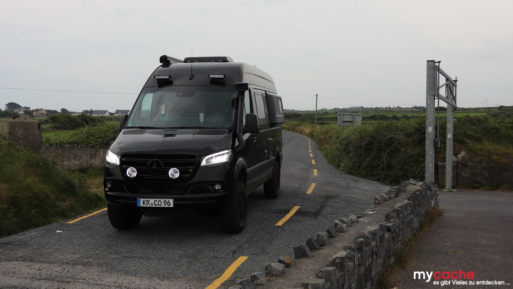 Nach einer stürmischen Nacht und einem regenreiche Start in den Tag setzt sich gegen 12 Uhr die Sonne durch. Die Straßen und Klippen sind nahezu menschenleer, so können wir überall in erster Reihe parken und die Ausblicke genießen. Dem WAW (N) folgend passieren wir ein Torfabbaugebiet. Gegen Nachmittag erreichen wir die sehr beeindruckenden Klippen von Downpatrick Head und sind angenehm überrascht, das alles ohne Eintritt zu bezahlen zu besichtigen ist. Auf dem weiteren Track erreichen wir eine Bucht, die aufgrund der Ebbe mit dem 4x4 zu befahren ist. Endstation für heute ist die Bucht von Sligo. Dort kehren wir am Aughris Head in der Beachbar ein. Im angeschlossenen Campground verbringen wir die Nacht.