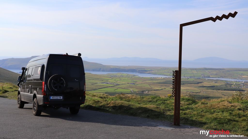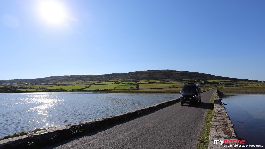 Nach nur zehn Kilometern erreichen wir unser erstes Ziel für heute, Mizen Head den südlichsten Punkt Irlands. Hier gibt es eine ehemalige Station der Coast Guard und einen über eine Brücke erreichbaren Leuchturm mit einem monumentalen Blick auf den Atlantik. Über kurvenreiche schmale Straßen erreichen wir den Aussichtspunkt Sheep‘s Head. Hier verbringen wir unsere obligatorische Kaffepause und folgen danach weiter dem WAW (N) über den Seefin Viewpoint bis nach Adrigole im Campsite Hungry Hill.