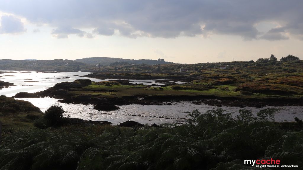 Der Tag beginnt mit Sonne und blauem Himmel mit kleineren Wolken und ordentlich Wind. Beim Murrooghtoohy erkunden wir den kargen steinigen Strand. Mit sich verringernder Entfernung nach Galway nimmt der Verkehr nun zu. Nach dem Durchqueren von Galway, geht es weiter über kleine Nebenstraßen an der Küste entlang. Endstation für heute ist die Bucht von Gorteen. Hier genießen wir in der Abendsonne Chips mit Curry ohne Fish.