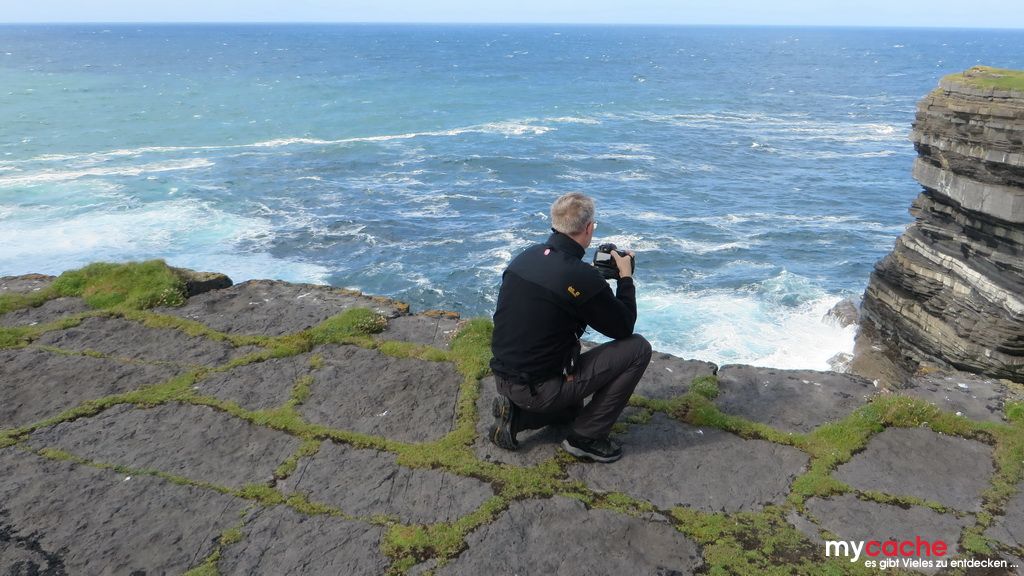 Erstes Ziel ist heute der Leuchtturm von Loop Head. Weiter führt uns der WAW (N) vorbei an den Bridges of Ross. Gegen 17:30 erreichen wir die Cliffs of Moher, der Besucherparkplatz ist noch gut belegt. Wir erklimmen zuerst die südliche Seite der beeindruckenden 215 Meter hohen Klippen und besuchen danach das nördlich gelegene kleine Castle auf der Klippe. Der Tag verabschiedet sich mit einem grandiosen Sonnenuntergang.