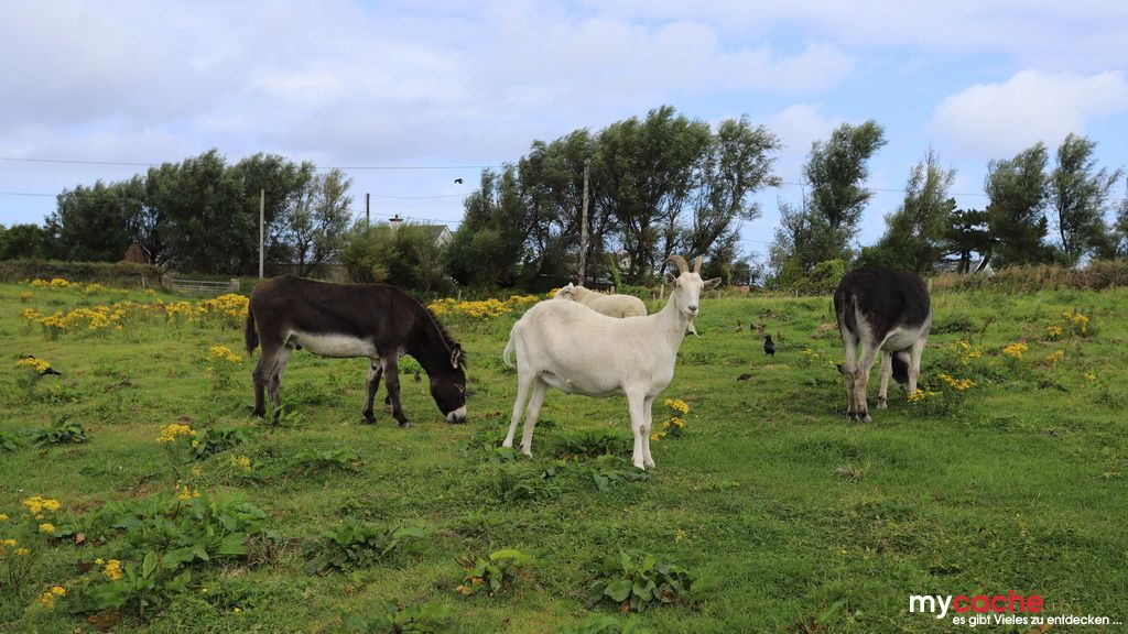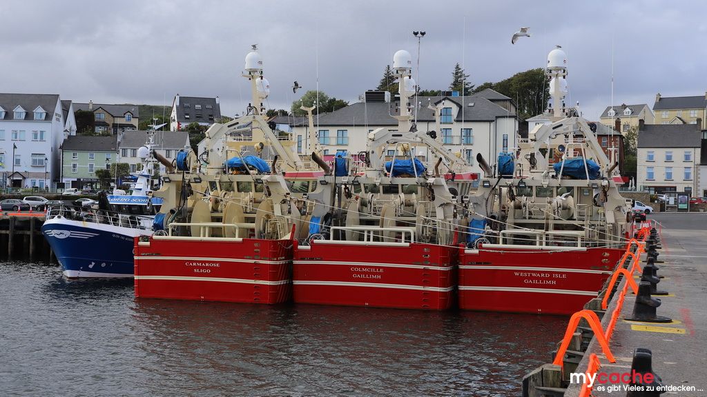 Wie wir heute Morgen festgestellten verbrachten wir die vergangene Nacht in tierreicher Gesellschaft. Bei bestem Wetter mit angenehmen 18 Grad folgen wir dem WAW weiter nach Norden. Die besuchten Strände sind nun vielmehr von Surfern und Hotels geprägt. Die Straßen werden zunehmend voller, was zum einen am heutigen Samstag liegt als auch an der unmittelbaren Grenze zu Nord Irland. Dieses spiegelt sich an den Kennzeichen der Fahrzeuge wieder. Wir nehmen nach Möglichkeit die kleineren Nebenstraßen, an denen sich die ein oder andere Sehenswürdigkeit entdecken läßt. Im Hafen von Killybegs liegt eine ganze Armarda von Fischtrawlern und bereitet sich auf den nächsten Fang vor, stets begleitet von unzähligen Möwen. Weiter geht es entlang der Küste bis nach Teileann.