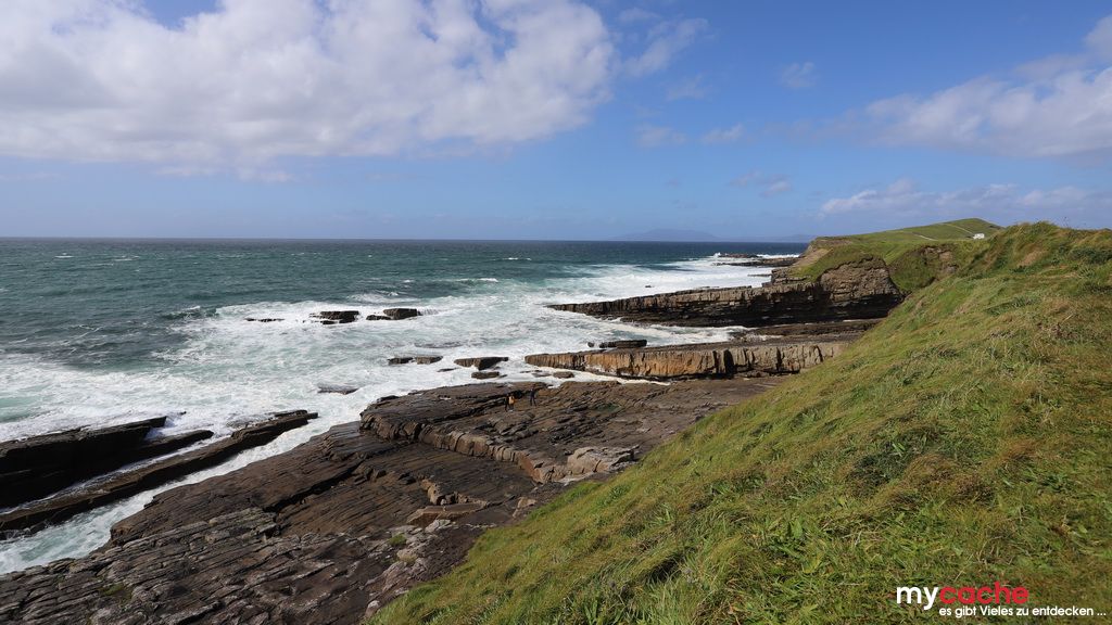 Nach Ausnutzung aller Resourcen unseres Campingplatzes brechen wir auf nach Kinsale dem Startpunkt des Wild Atlantic Way Fahrtrichtung Norden oder kurz WAW (N). Einen kurzen Zwischenstop legen wir am Old Head of Kingsale ein auf dem sich ein Golfplatz mit bestem Blick auf den Atlantik befindet. Weiter geht der Weg entlang der Küste mit vielen Stränden bei einer Außentemperatur von 27,5 Grad. Kaffee trinken wir in Clonakilty am Model Railway Village. Gestärkt folgen wir weiter den WAW (N) Wegweisern. Diese führen uns zu vielen sehenswerten Halbinseln und Klippen. Gegen Abend schlagen wir unser Nachtlager am Galley Cove Beach auf.