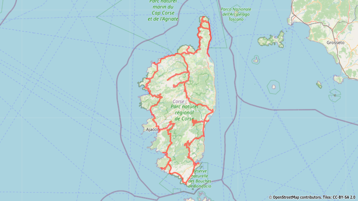 Unser letzter Tag auf Korsika führt uns über unzählige Kurven zur Nordspitze der Insel, wo wir einen letzten Blick aufs Meer werfen. (169 km)