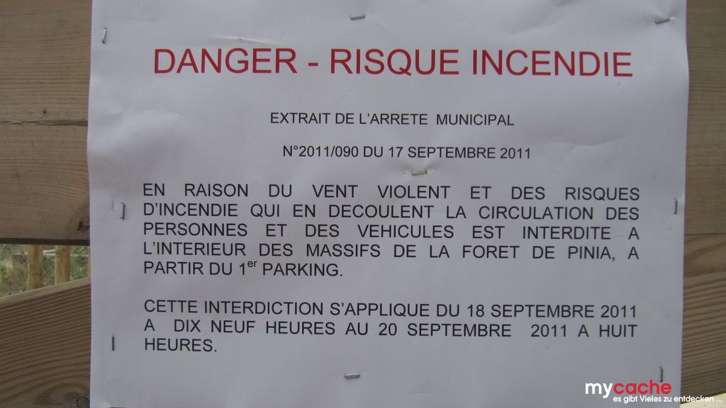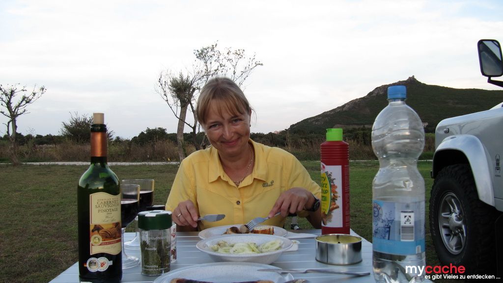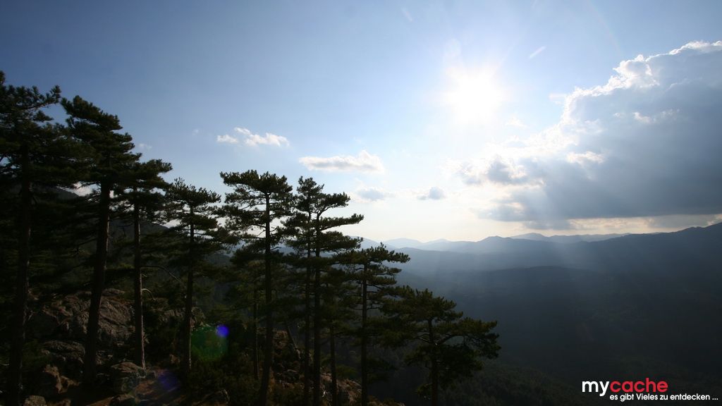 Wir beginnen den Tag mit einer ausgiebigen Wanderung durch einen Pinienwald zu einem Cache in Strandnähe. Auf unserem Rückweg müssen wir feststellen, dass es für den Abend und den folgenden Tag eine Unwetterwarnung gibt. So entschließen wir uns zur Inselmitte nach Corte aufzubrechen, um dem Schlimmsten zu entgehen. Kaum dort angekommen, fängt es auch schon an zu regnen und zu stürmen.