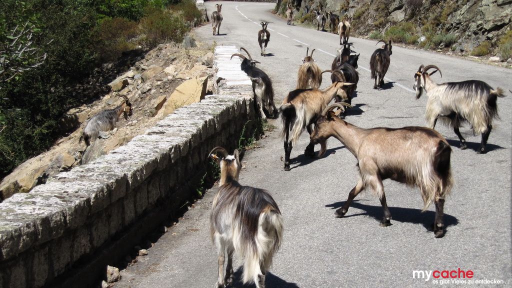Da heute Sonntag ist, kommen wir erst recht spät in Bewegung. Wir fahren hinauf in die Berge zu einer kurzen Wanderung. Anschließend entscheiden wir uns für eine kurvenreiche Nebenstrecke mit einigen Hindernissen der tierischen Art zurück zu Küste. Wir folgen der Küstenstraße weiter bis nach Prunelli. (104 km)