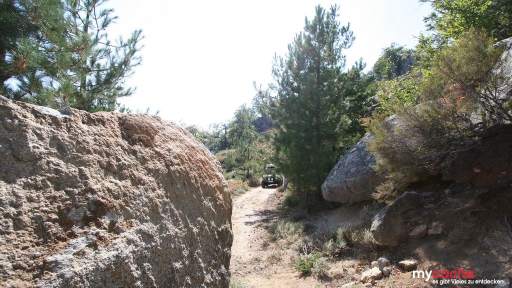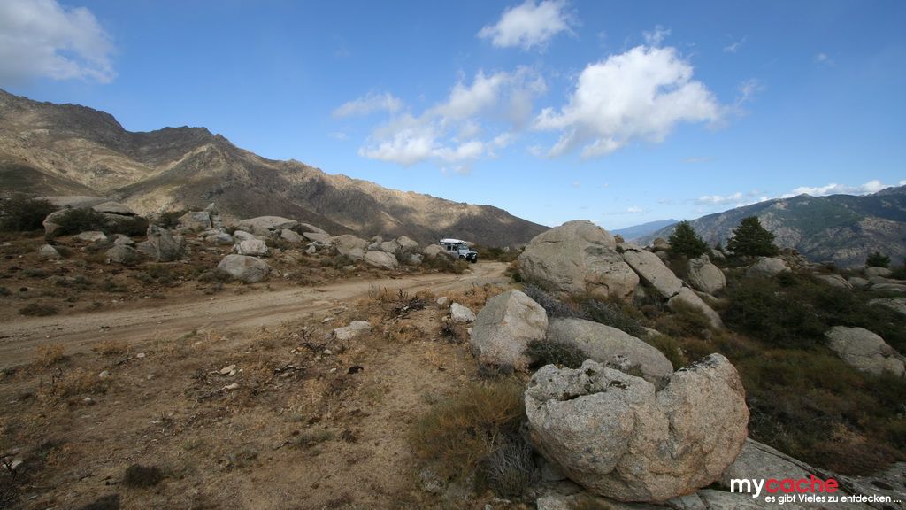 Nun steht die erste Erkundung des Hinterlandes auf dem Programm. Dazu fahren wir nach Trolla, um von dort aus auf einer 12,5 km langen Schotterpiste auf ein Hochplateau auf 1450 m Höhe zu gelangen. Mit zunehmender Höhe wird die Piste immer steiniger und von Querrillen durchzogener. Der mühevolle Aufstieg wird mit einem herrlichen Panorama belohnt. Auf dem Rückweg haben wir einen wunderbaren Blick auf den Stausee. Nach 3,5 Stunden Off Road nehmen wir die "Schnellstraße" zur Küste um in Olmeto zu übernachten. (120 km)