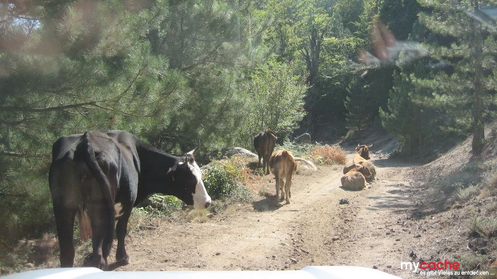 In Solenzara nutzen wir die Gelegenheit unsere Vorräte aufzustocken, um danach zu einer Off Road Tour in die Berge aufzubrechen. Der Track führt durch Wälder immer weiter nach oben bis zur Baumgrenze, um ein beeindruckendes Panorama freizugeben. Die immer anspruchsvollere Piste findet jedoch ein plötzliches Ende vor einem massiven Hindernis durch einen kürzlich erfolgten Erdrutsch. Wir nehmen denselben Weg zurück und passieren erneut eine Herde von Kühen, welche eine Sitzblockade auf dem Weg veranstalten. Nachdem wir auch dieses Hindernis mit einiger Überzeugungskraft gemeistert haben, fahren wir wieder zurück Küste. (85 km)