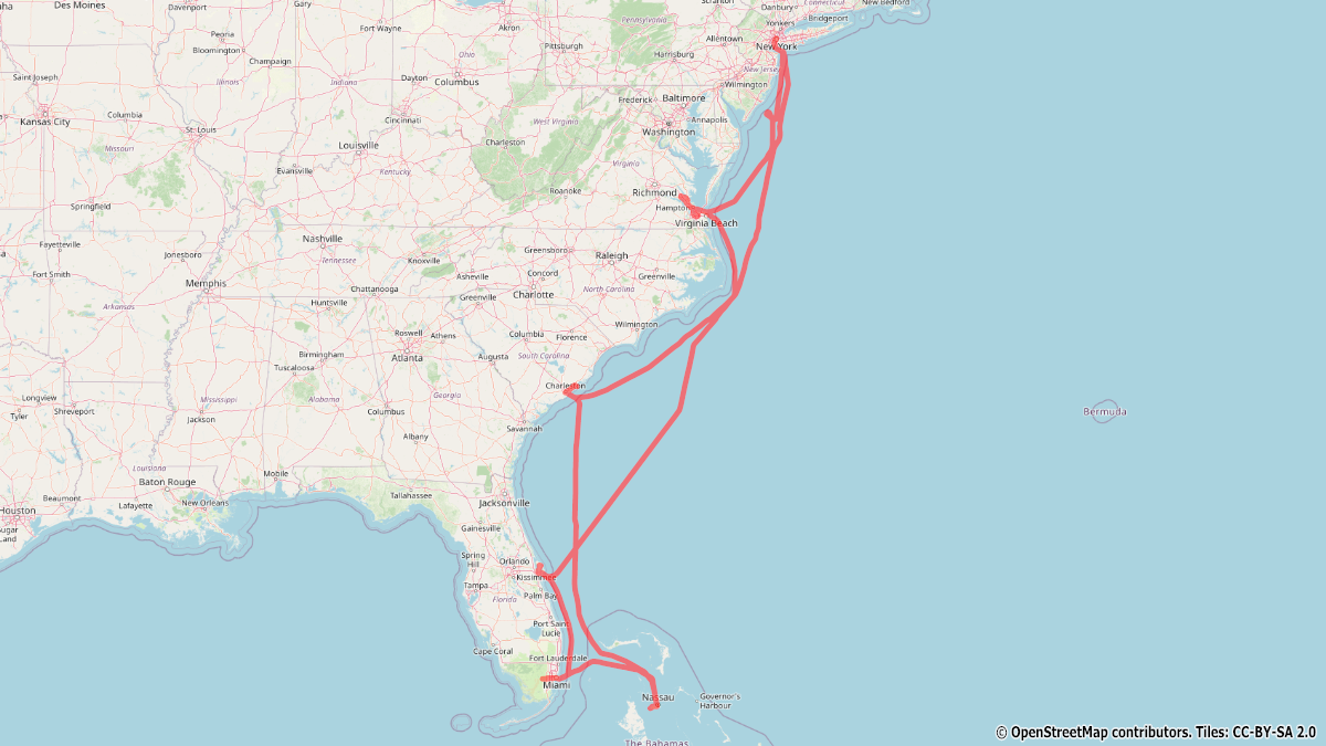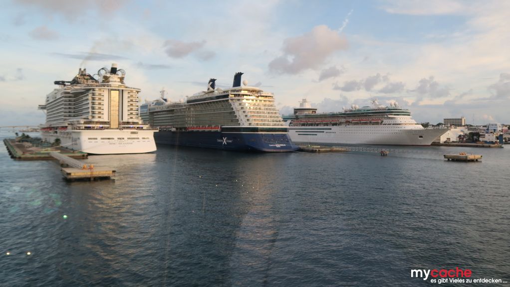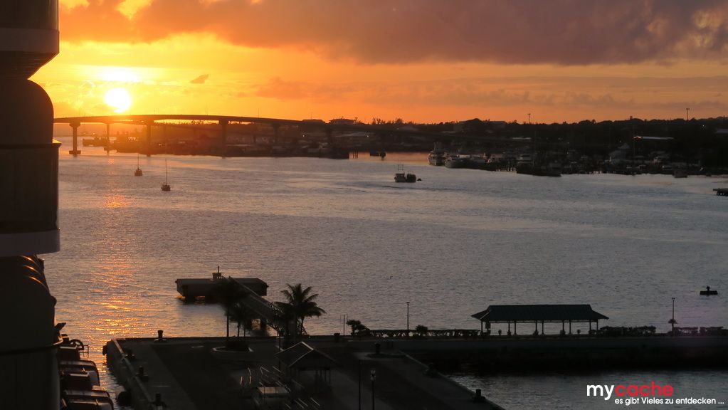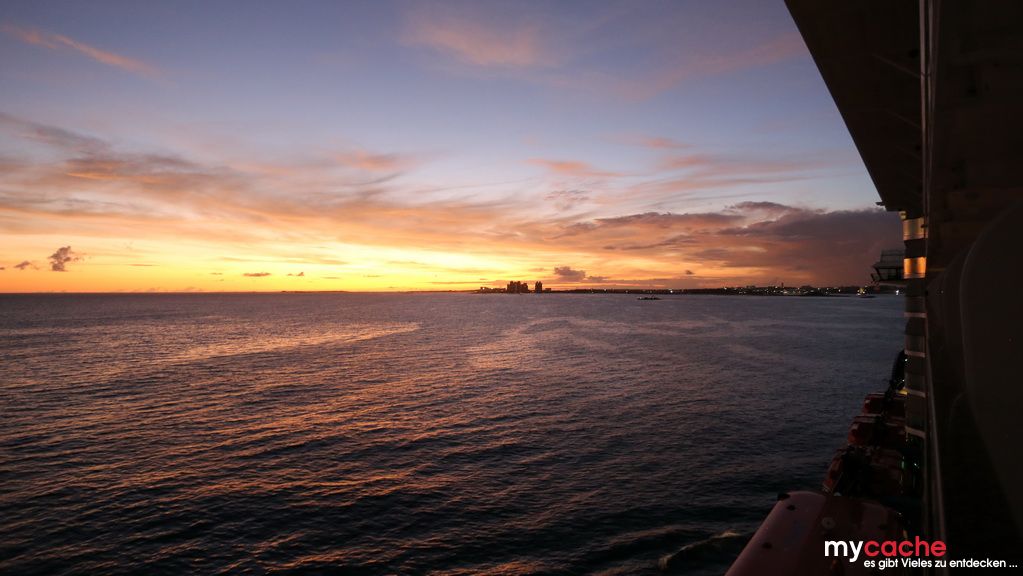 Mit dem Sonnenaufgang laufen wir im Hafen von Nassau ein und starten unseren Trip durch die bunten Straßen zum Clifton Heritage National, was bei 36°C kein wirkliches Vergnügen ist. Den Nachmittag verbringen wir an dem nahegelegenen weißen Sandstrand und werden kurzfristig von einem Regenschauer abgekühlt. Zurück in Nassau der ehemaligen Piratenstadt, checken wir kurz im Hilton ein, um dort in geheimer Mission der Kanone im Garten ein Geheimnis zu entlocken. Zurück zum Schiff geht es an einigen Sehenswürdigkeiten vorbei und wir treffen dort auf weitere Kaliber unserer Größe. Mit dem Sonnenuntergang verlasssen wir wieder die Bahamas mit Kurs zurück Richtung Norden.