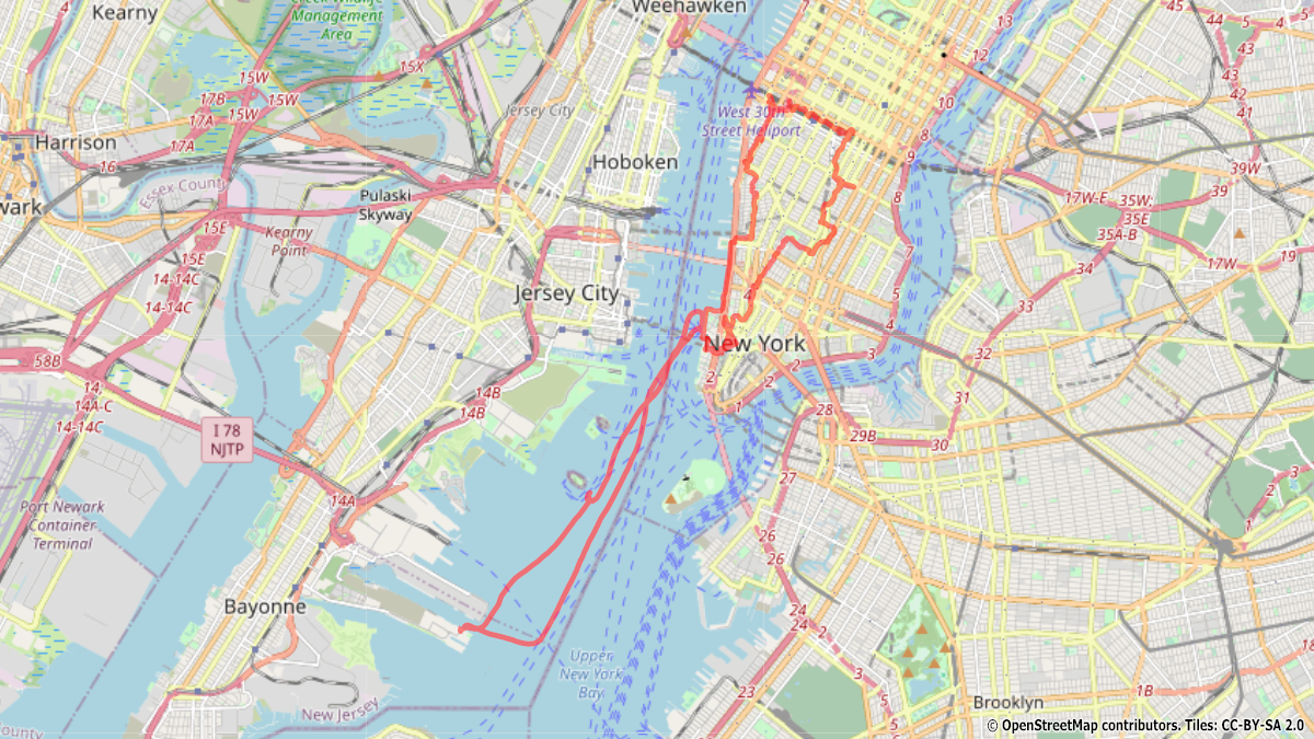Nach einer kurzen Nacht starten wir um 9:00 Uhr unsere Erkundung New Yorks. Dazu geht es mit der Fähre direkt vom Schiff über den Hudson River vorbei an der Freiheitsstatue zum Fähranleger nach Manhattan bei den alten Piers. Zu Fuß folgen wir der Uferpromenade in nördlicher Richtung und wechseln dann auf die Highline, die ehemalige Bahnstrecke mitten durch New York. Vorbei am Empire State Bulding, der 5th Avenue, dem Broadway bis zum Ground Zero zurück zum Fähranleger legen wir eine Strecke von 23,5 km zurück. Auf der Rückfahrt genießen wir die nächtliche Skyline und von der Wasserseite. Kurz darauf legen wir auch schon ab und passieren noch einmal Liberty Island bevor es Richtung Atlanik geht.