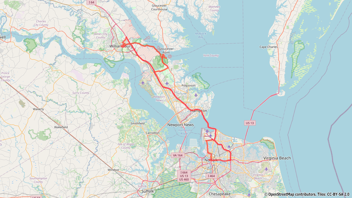 Mit dem Sonnenaufgang haben wir in Norfolk festgemacht. Nach einem schnellen Frühstück brechen wir auf nach Williamsburg. Es geht über typisch amerikanische Highways, wobei einige Meilen hiervon auf Stelzen im Wasser gebaut sind, frei nach dem Motto, wo kein Weg ist, bauen wir eben einen. Den Tag verbringen wir mit der Besichtigung der Kollonialhäuser. Hier war einst die Hauptstadt der reichsten und größten britischen Kolonie. Der Rückweg führt uns über Yorktown, dem Schlachtfeld der Freiheitskämpfe, zurück zum Schiff, mit dem wir bei Sonnenuntergang auslaufen.