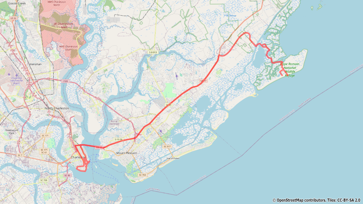 Unser letzter Landgang auf dieser Reise führt uns nach Charleston, wo wir erneut die Einreiseformalitäten der USA über uns ergehen lassen müssen, da wir ja nun von den Bahamas aus angereist sind. Wir fahren von Charleston Habour über die US17 zum Naturpark Cape Romain. Die Strecke erinnert uns ein wenig an unsere letzte Skandinavienreise. Mit dem Boot setzen wir nach Bull Island hinüber und erkunden bei einer Wanderung die Fauna und Flora des Naturreservates. Im Wasser entdecken wir einige Alligatoren und am Strand finden wir verlasssene Schildkröten Panzer. Zurück in Charleston angekommen, erkunden wir noch ein wenig die schöne Altstadt bei einer Cache Runde, bevor es zum letzen Mal auf dieser Reise heißt alle Mann an Bord.