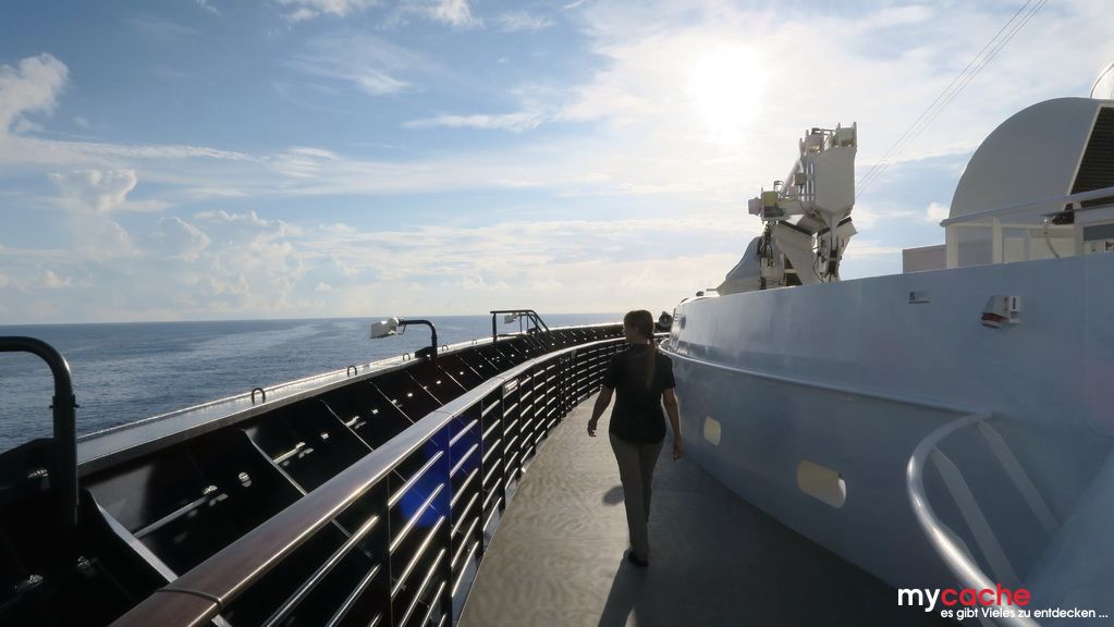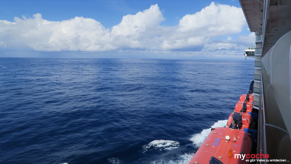 Ein weiterer Seetag zum Ausruhen. Das Wetter ist super. Schon beim Aufstehen kommt karibisches Feeling auf, Lufttemperatur 24°C, Meerwassertemperatur 26°C.