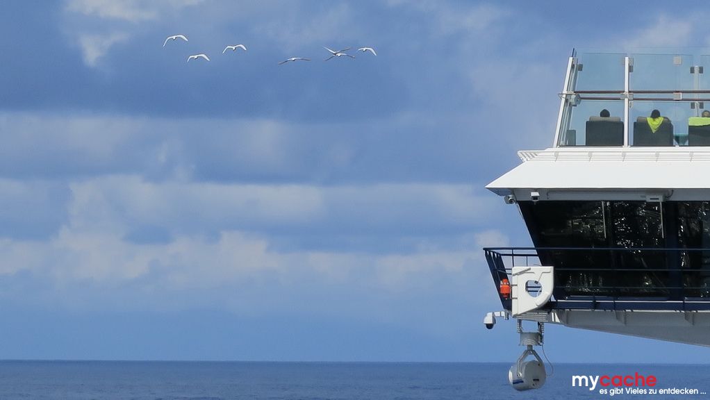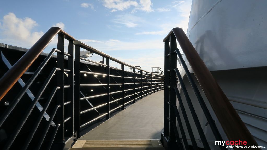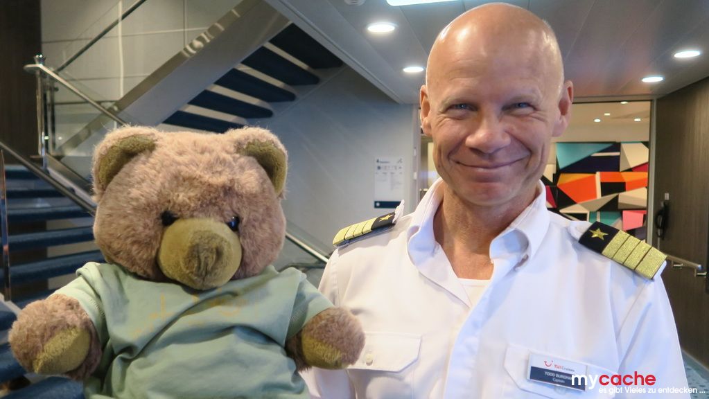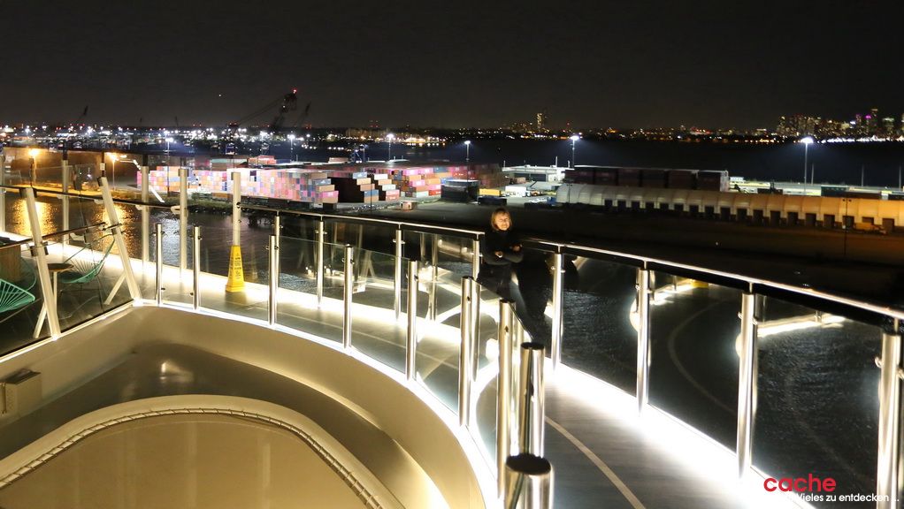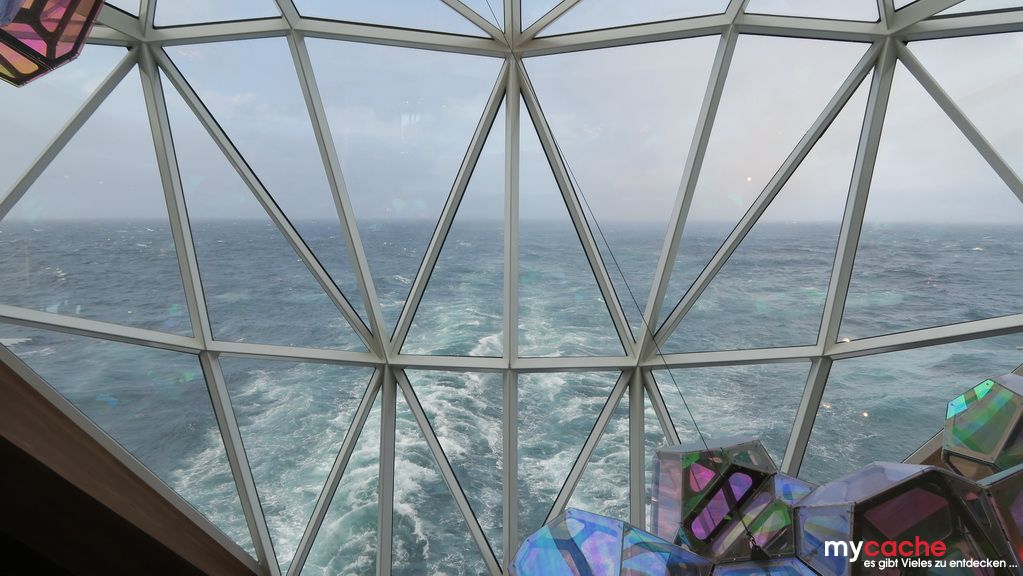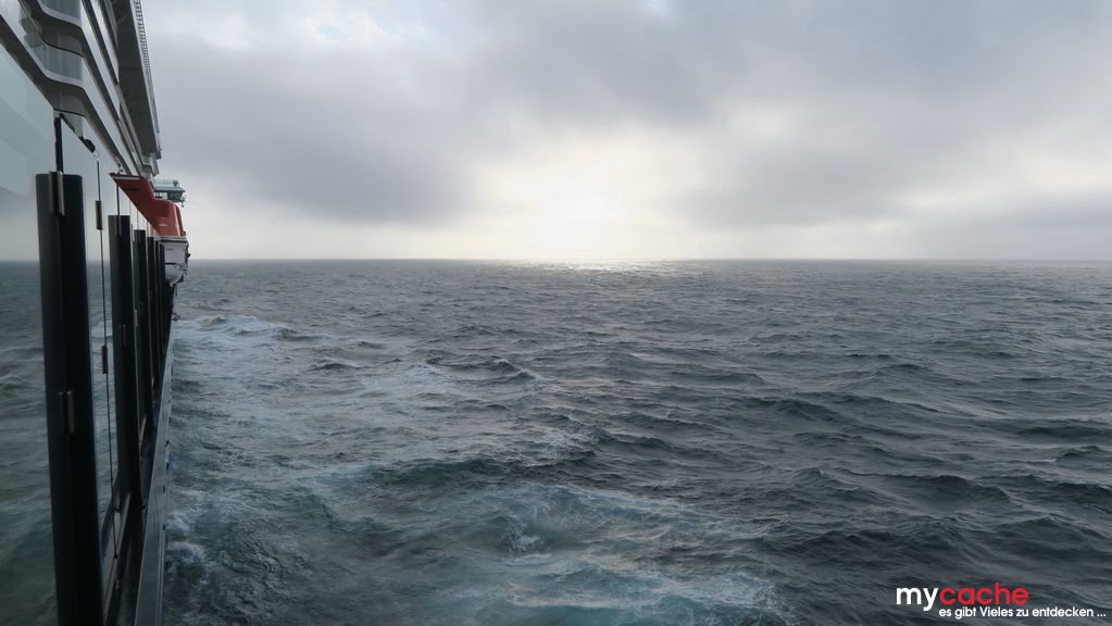 Bei unserem letzten Seetag hat unser kleiner Reiseleiter das Sagen und führt uns an seine Lieblingsplätze auf dem Schiff. Bei einem kurzen Treffen mit dem Kapitän erfahren wir, dass das Schiff nun über 19 Knoten (35 km/h) schnell unterwegs ist. Das liegt an dem warmen Golfstrom, in dem wir mitschwimmen. Und schon neigt sich der letzte Tag auf dem Schiff dem Ende zu..