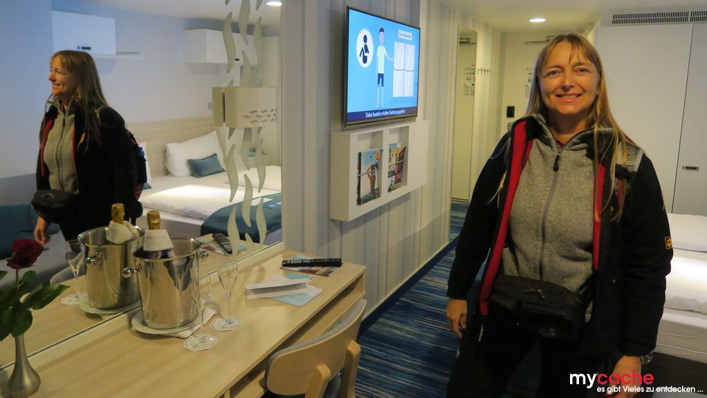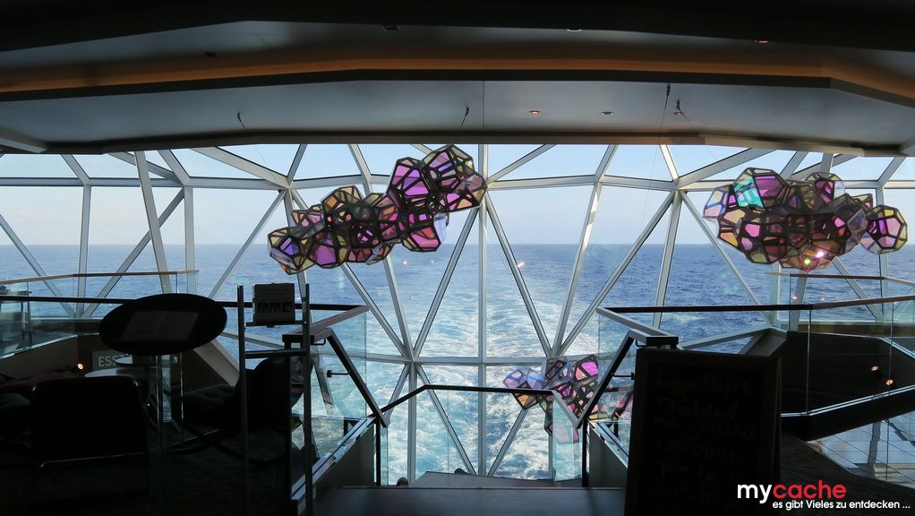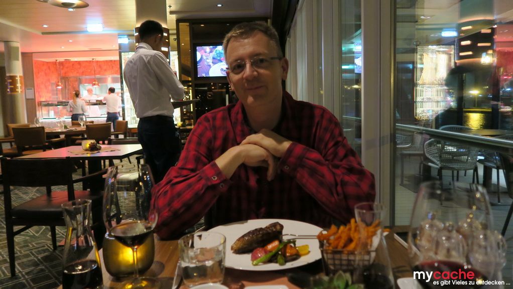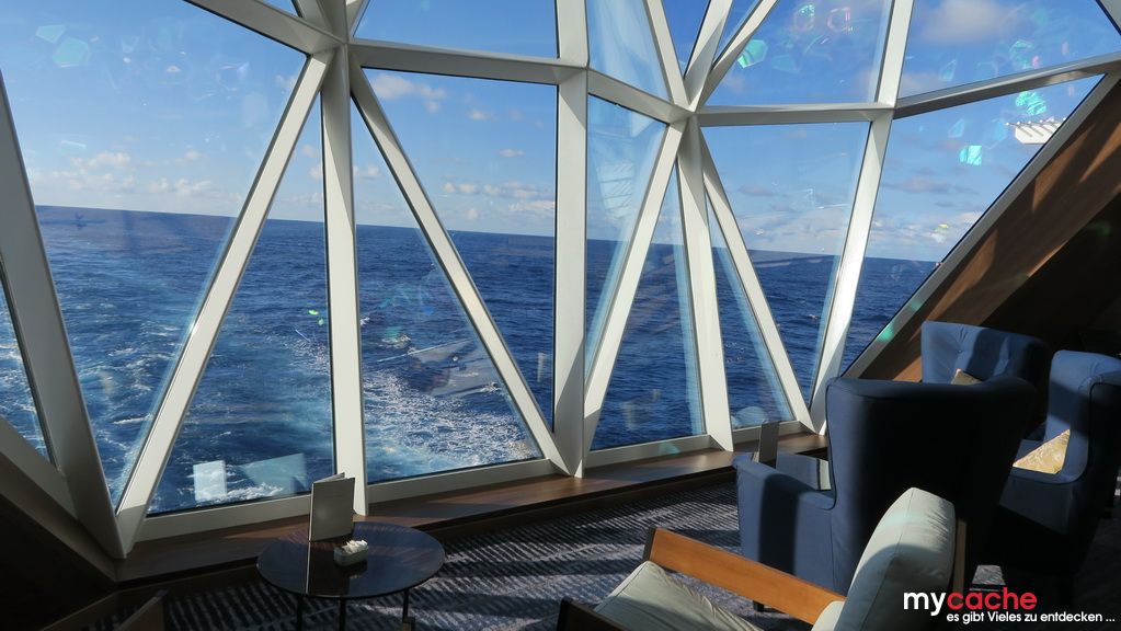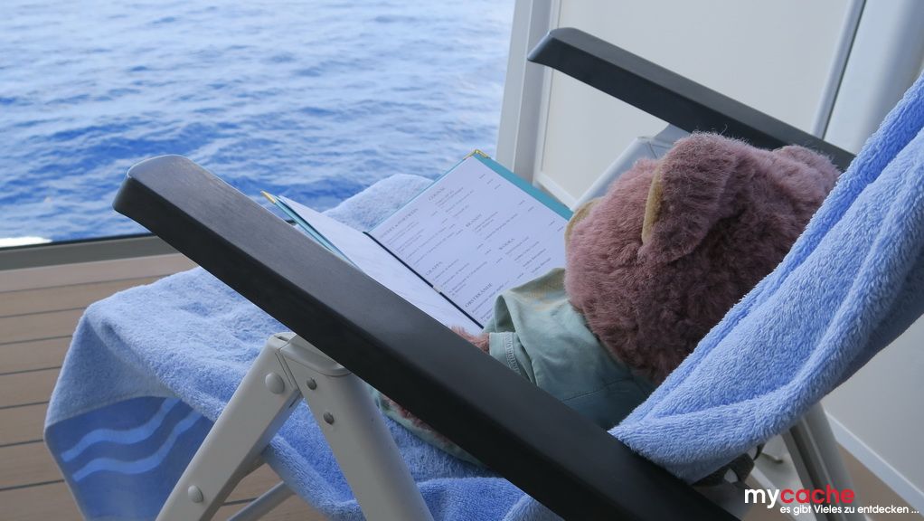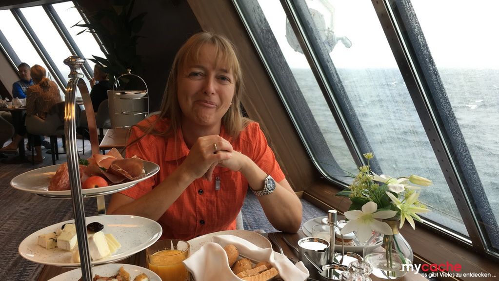 Wir nutzen unseren ersten Seetag, bei etwas unruhiger See, um die sechs Stunden Zeitverschiebung zu verarbeiten und die Lebensgeister mit Speisen und Getränken wiederzubeleben.
