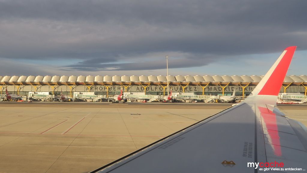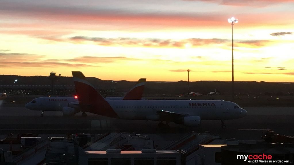Mit dem Sonnenaufgang setzen wir zu unserer Zwischenlandung um 5:35 Uhr in Madrid an, um danach die letzte Etappe um 8:40 Uhr nach Düsseldorf in Angriff zu nehmen, dort landen wir um 11:15 Uhr.