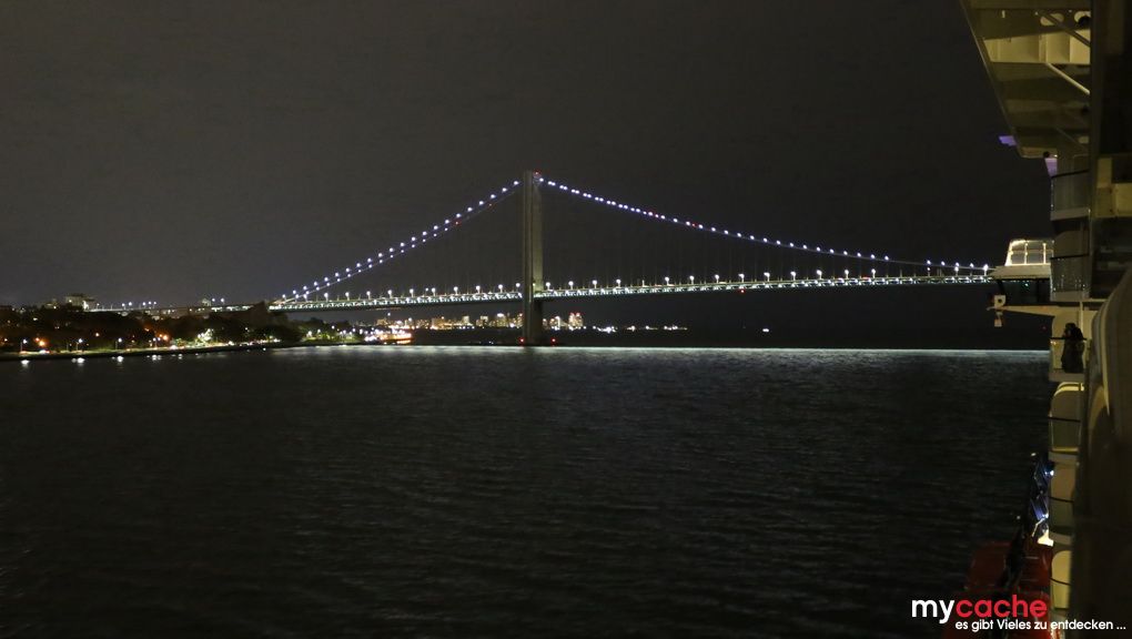 Nachdem wir gestern Abend erfahren haben, dass unser Flug anulliert wurde und wir umbuchen mussten, starten wir nun von Düsseldorf mit einem Zwischenstop in München unsere Anreise nach New York. Mit fünfstündiger Verspätung erreichen wir unser Schiff im Hafen von Bayonne und kommen noch fast rechtzeitig zu unserem reservierten Tisch im Surf & Turf. Dort lassen wir den 24 Stunden Tag ausklingen.