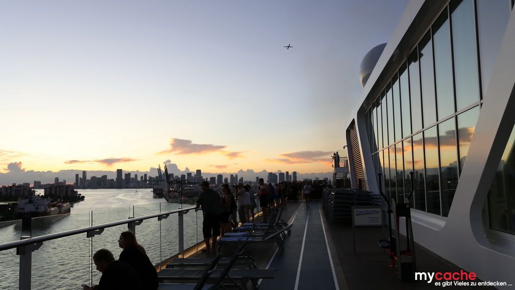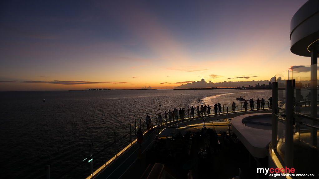 Nach einem ausgiebigen Frühstück geht es zu Fuß Richtung Miami City, um ein wenig zu cachen und den Anblick der Skyline wirken zu lassen. Nach einer kurzen Stärkung geht es am Nachmittag hinaus zu den Everglades. Dort haben wir einen spritzigen Ausflug mit dem Propellerboot durch den sumpfigen Fluss aus Gras. Danach lernen wir noch Alligatoren und Krokodile zu unterscheiden. Zurück an Bord startet nach Sonnenuntergang die obligatorische Helloween Party an Deck.