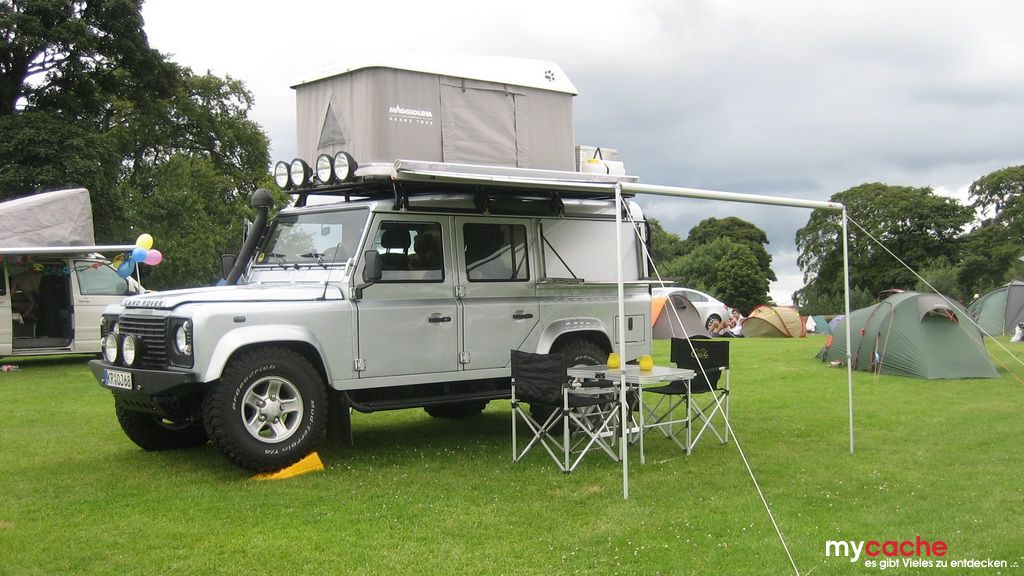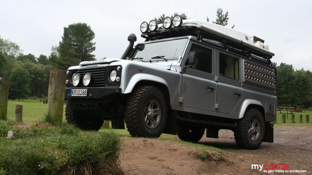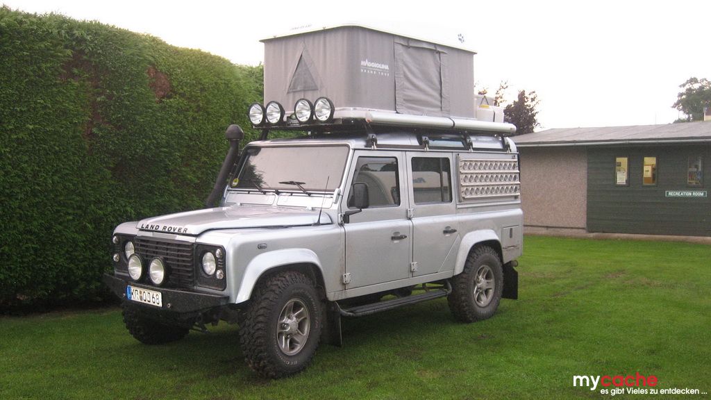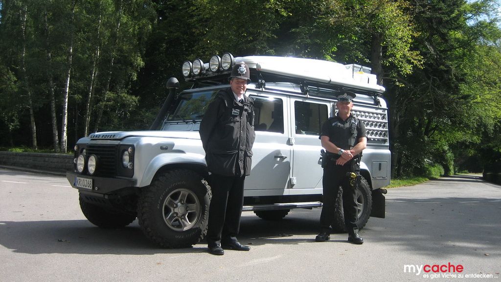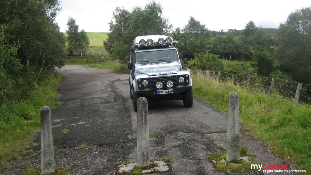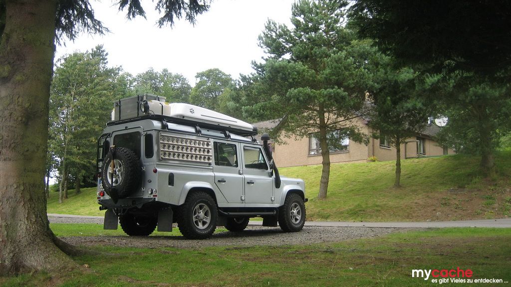 Nach einem sonnigen Frühstück brechen wir in Richtung Braemar auf. Die dortigen Highland Games finden zwar erst am übernächsten Wochenende statt, aber die Queen ist schon in Balmoral Castle eingetroffen. Deshalb müssen wir den Sparziergang in ihrem Schloßgarten leider streichen, aber zwei Mitarbeiter Ihrer Leibgarde haben nichts besseres zu tun, als sich unseren Defender genauer anzusehen. Nach einer Highlandrunde machen wir uns in Richtung Dunkeld zum schottischen Landrover Experience Center auf. Dort beenden wir unsere heutige Tour. (194 km)