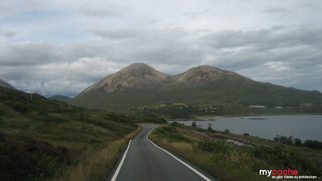 Heute führt uns unsere Route entlang des Caledonian Canal, der sich durch die verschiedensten Lochs zieht. Bei Invergarry biegen wir in Richtung Nordwesten zu den Five Sisters ab. Über die A87 fahren wir zum Eilean Donan Castle, wo wir auf unseren ersten Dudelsackspieler treffen. Weiter geht es zu Kyle of Lochalsh, dort fahren wir über die Skye Bridge. Nun haben wir die Isle of Skye erreicht. Unsere erste Erkundung der Insel führt uns über eine kurvenreiche Single Track Road nach Elgol. Zwangsweise nehmen wir den gleichen Weg zurück, um unsere Fahrt nach Nordwesten fortzusetzen. Unser Tag endet in Sligachan. (222 km)