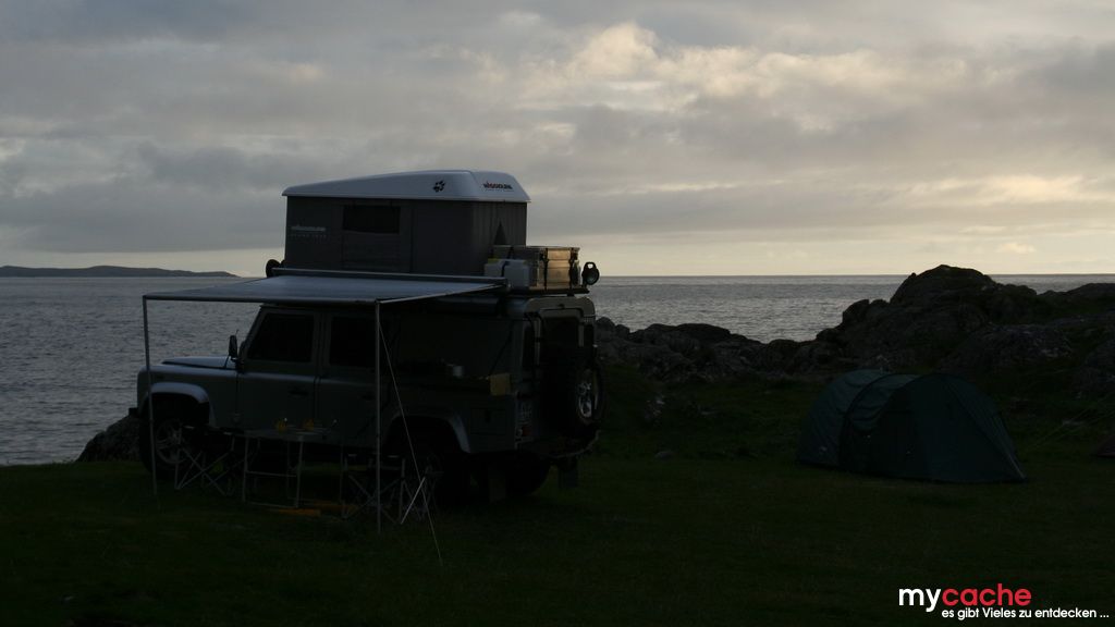 Nach dem Frühstück gelingt es der Sonne sich durchzusetzen und wir beschließen den Südwesten der Insel zu erkunden. Dazu durchqueren wir die Insel in ihrer Mitte über eine gut ausgebaute Straße. Diese verlassen wir kurz vor Ardhasig, um unseren Weg auf einer wunderschönen Single Track Road fortzusetzen. Als erstes erkunden wir die Bucht bei Rhenigidale. Um danach auf die andere Seite der Insel zu gelangen, folgen wir dem Track entlang der Küste und passieren das Castle Amhuinnsuidhe direkt auf unserem Weg. Weiter geht es zum Sandstrand von Hushinish. Wir folgen noch einem kurzen Track auf die andere Seite der Bucht und gelangen an einen traumhaften Platz und beschließen dort die Tour für heute zu beenden. (90 km)