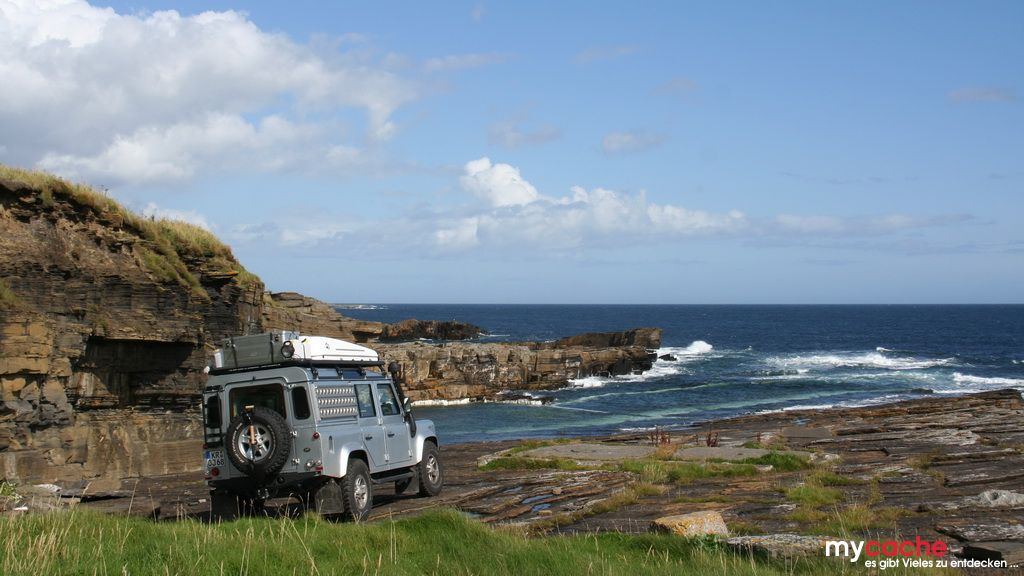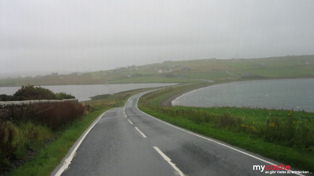 Das Frühstück gibt es heute wegen kurzfristig einsetzendem Regen einmal im Auto. Da wir nicht aus Zucker sind, erkunden wir die Zeichen der Vergangenheit in Form der Standing Stones of Stenness, Ring of Brodgar und die Reste der Steinzeitlichen Siedlung Skara Brae. Nun geht es daran unsere Vorräte wieder auzufüllen, dieses gelingt uns in der Haupstatdt der Orkneys Kirkwall, wo wir gleich drei große Supermärkte nebeneinander finden. Wir beschließen auch sogleich vor Ort das Nachtlager aufzuschlagen. (120 km)