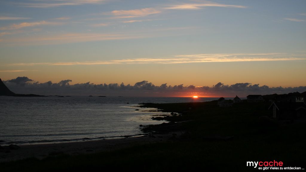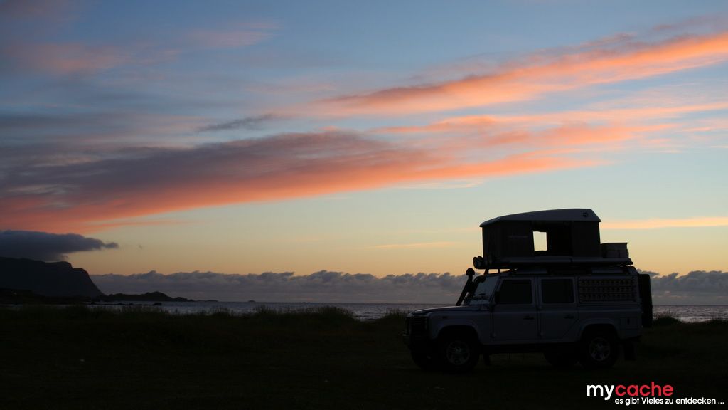 Nach einer entspannten Nacht setzen wir unsere Tour Richtung Lofoten fort. Nachdem wir Moi Rana durchquert haben, überschreiten wir den Polarkreis und sehen uns dort um. Danach setzen wir unseren Weg nach Bodo - dem Tor zu den Lofoten - fort. In Bodo angekommen, schiffen wir auf der Hurtigruten mit dem Ziel Moskenes ein. Wir fahren noch ein kurzes Stück auf den Lofoten, bis wir einen wunderschönen Platz zum Übernachten direkt am Meer finden. Bei einem wunderschönen Sonnenuntergang lassen wir den Tag ausklingen.