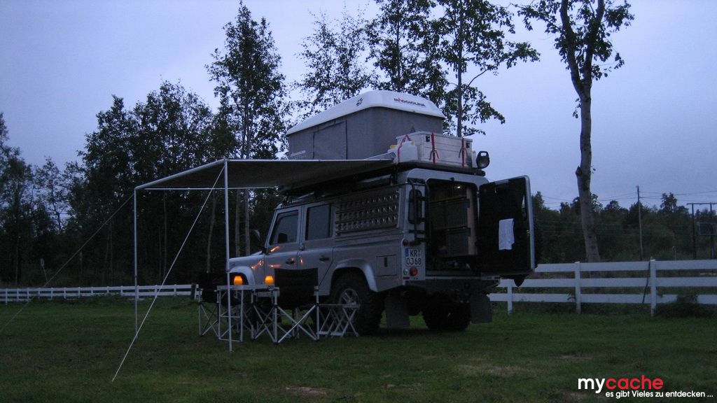 Wir beschließen aufgrund der Mückenübermacht ohne Frühstück aufzubrechen und setzen unseren Weg fort. Zuvor stocken wir unseren Proviant und Tankinhalt diesmal in Euro auf und finden einen mückenfreien Platz mitten im Wald, um doch noch zu unserem verdienten Frühstück zu kommen. Weiter geht die Fahrt nach Rovaniema. Dort überqueren wir den Polarkreis und kehren beim Weihnachtsmann ein. Einige Meter vor der schwedischen Grenze nutzen wir die Gelegenheit nochmal vollzutanken, um danach wenige Meter weiter im selben Ort - Happaranda - das auf der schwedischen Seite liegende IKEA zu besuchen. Wir beschließen noch weiterzufahren und durchqueren bei Dunkelheit und strömendem Regen das nördliche Schweden bis nach Skeleftea, wo wir unser spätestes Nachtlager aufschlagen.