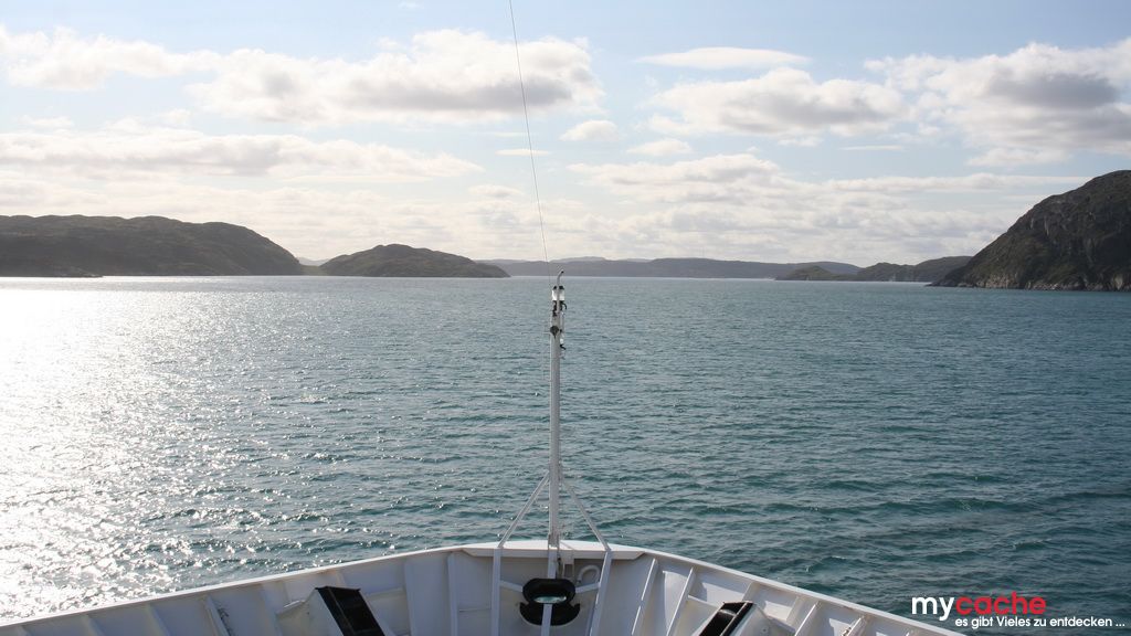 Nach einer etwas anderen Nacht in festen vier Wänden statten wir am Morgen dem Nordkap einen zweiten Besuch ab. Leider haben sich die Wetterbedingungen nicht verbessert und wir brechen auf nach Honningsvag, um nun unseren Weg nach Kirkenes mit den Hurtigruten fortzusetzen. Das Einschiffen auf die MS Nordkapp wird zum kleinen Abenteuer bei einer Fahrzeughöhe von 2,45 m und einem Laderaum von 2,50 m. Gegen 15:15 Uhr legen wir ab, um über die Barentsee unseren Weg nach Kirkenes fortzusetzen. Wir genießen die letzten Sonnenstrahlen an Deck und stärken uns noch am reichhaltigem Abendbuffet, um für den nächsten Tag startklar zu sein.