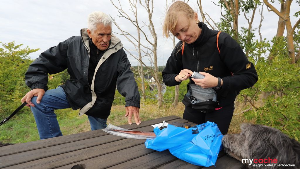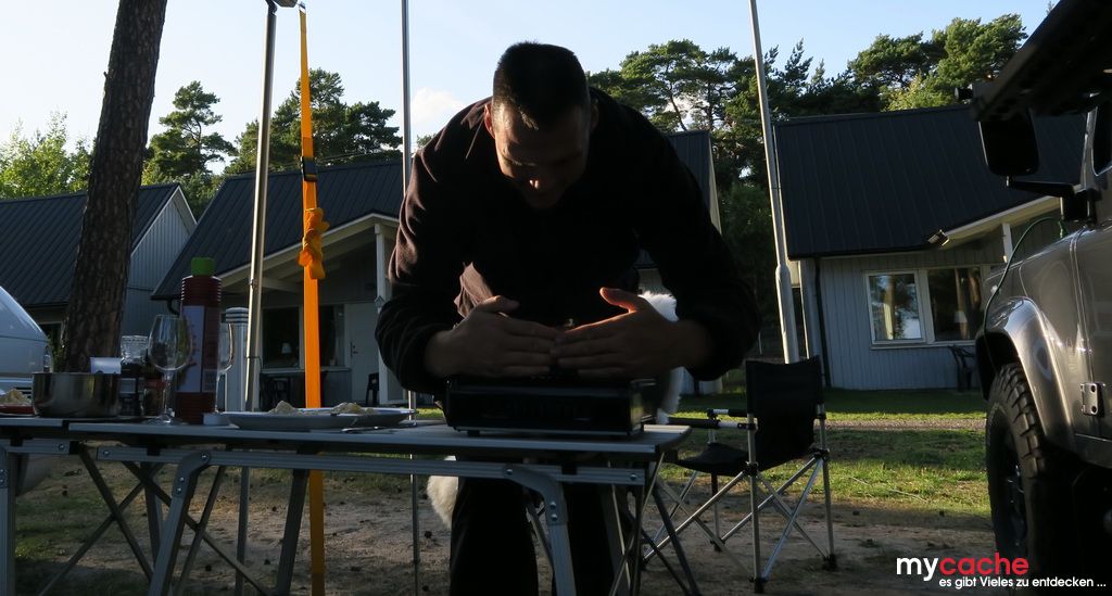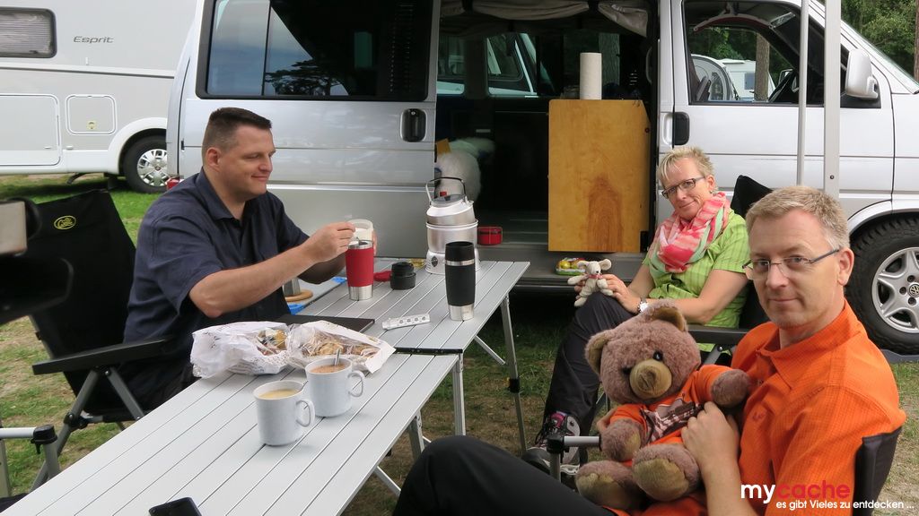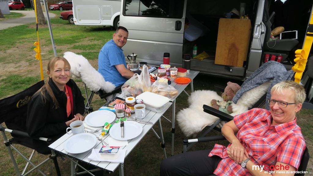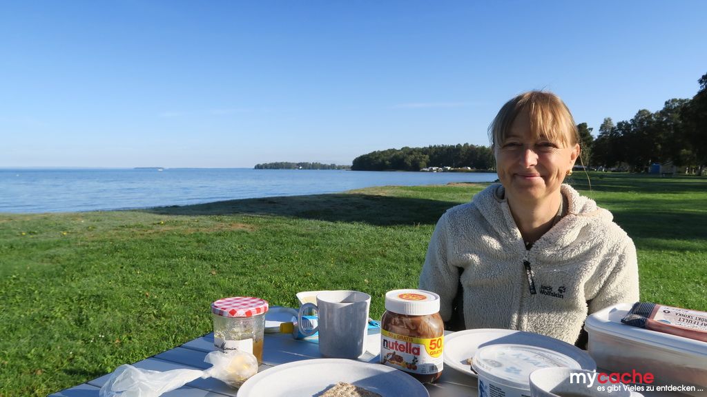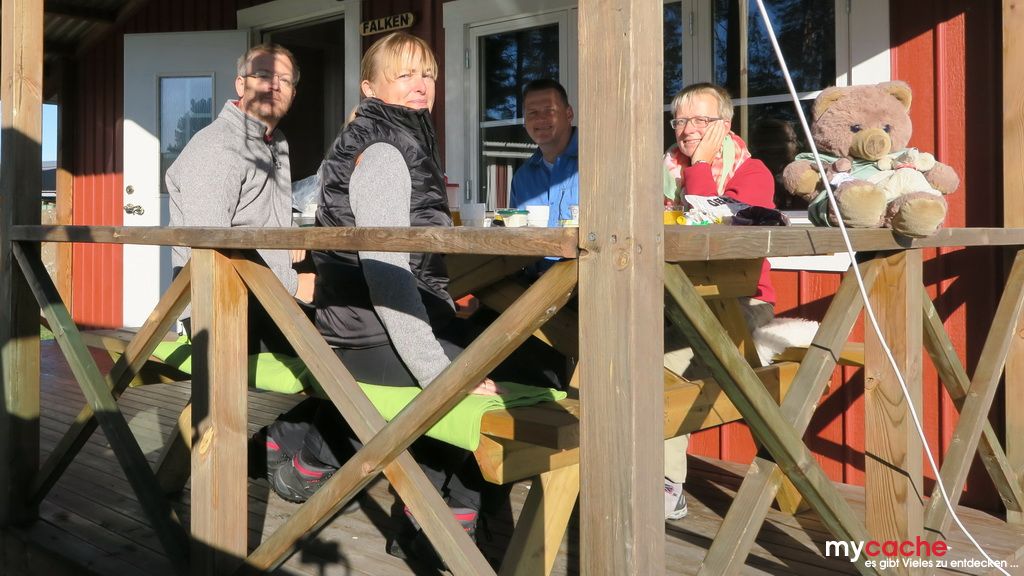 Nun machen sich nach dem Frühstück weitere vier auf den Heimweg, zwei Zweibeiner mit ihren Vierbeinern. Nach der Neuzuordnung der Schlafplätze, welche nun in Überzahl zu Verfügung stehen, brechen auch wir zu Fuß zum Strand hinter unserem Haus auf. Wir nutzen die Gelegenheit gleich einen Cache bei Mälarhusen zu finden.