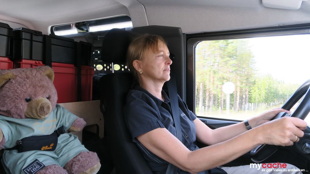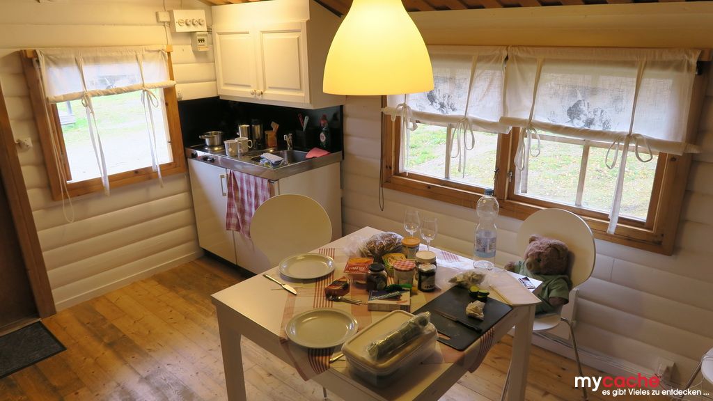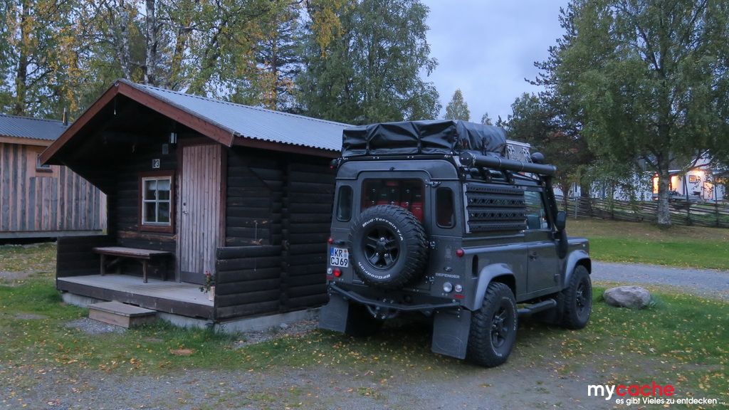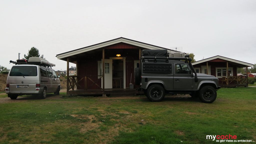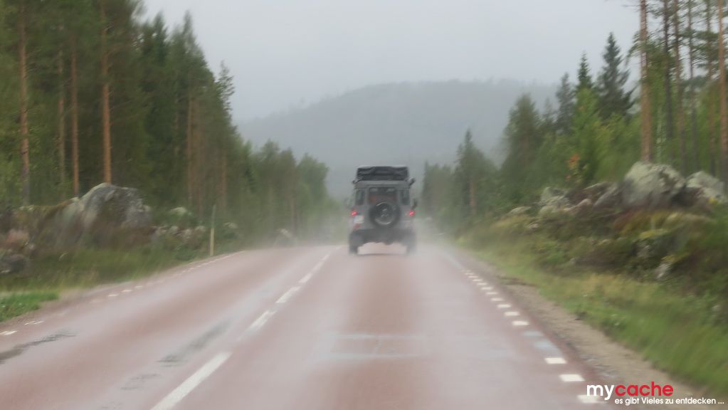 Nach einer regenreichen Nacht finden wir nach dem Frühstück trockene Bedingungen vor, so dass wir unser Auto wieder gut beladen können. Wir nutzen die Gelegenheit, um noch zwei Caches zu suchen. Danach brechen wir auf, um uns nach 14 Tagen mit Gudrun und Michael in Östersund zu treffen und die weitere Route gemeinsam fortzusetzen. Wegen des plötzlichen Wetterwechsels entschließen wir uns für die Nacht gemeinsam eine Hütte in Sveg zu beziehen. (412 km)