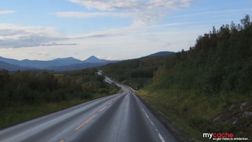 Nach unserer Übernachtung in einer Hütte in Saltstraumen, beginnt der Tag sehr stürmisch. Wir fahren bis nach Mo I Rana und ändern dann kurzfristig unsere Route und nehmen die E12 über den Polarkreis mit Ziel Schweden. Weiter geht es, recht einsam bei stürmischen und regnerischen Bedingungen über die E45 bis nach Vilhelmina. (525 km)