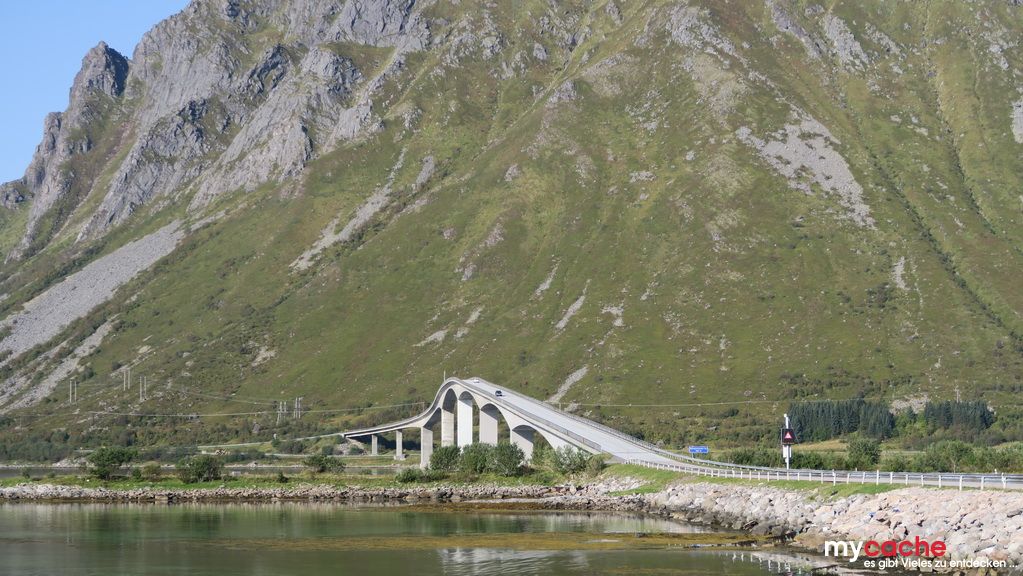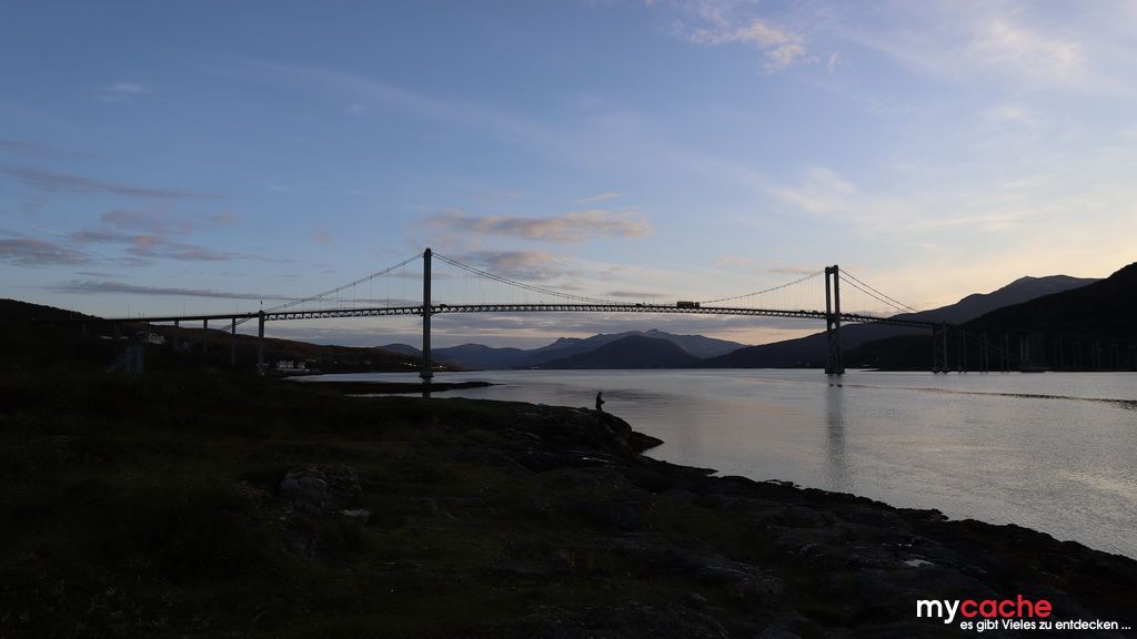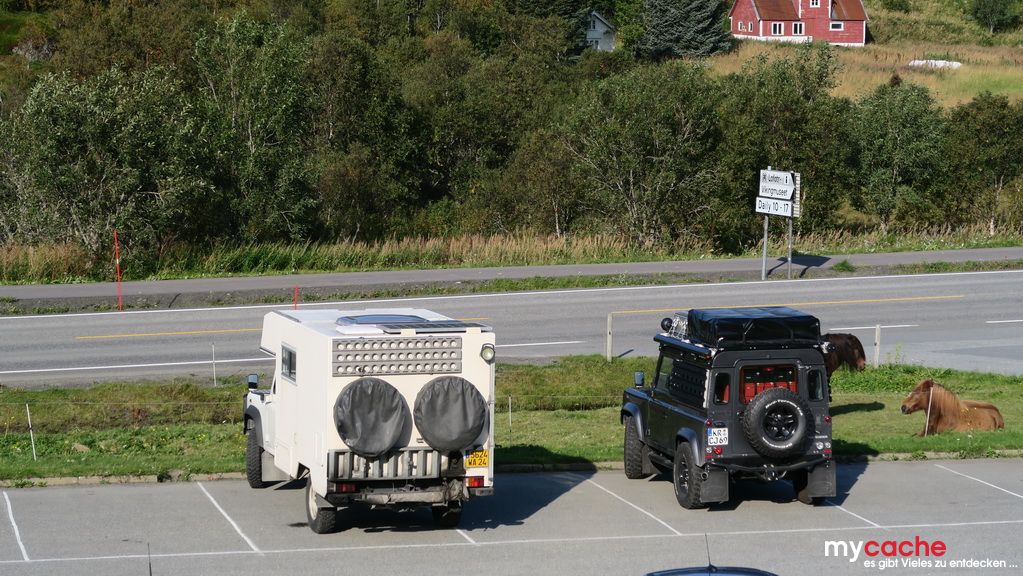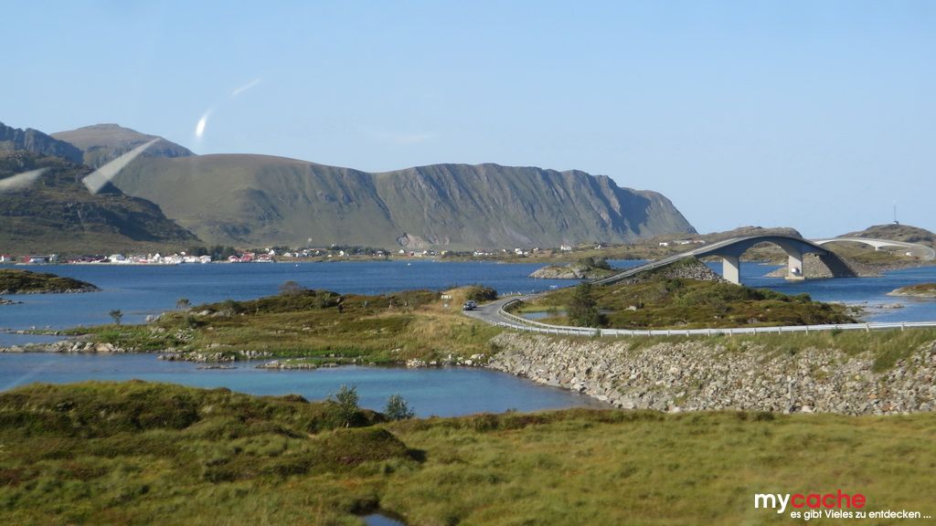 Da es keine Möglichkeit gibt, einen Platz auf der Besichtigungstour der Erzmine zu bekommen, beschließen wir, uns das ganze von der Bergstation des Skilift anzusehen. Um dorthin zu gelangen, befahren wir eine laut Touristen Information nicht verbotene Piste hinauf zur Bergstation. Von hier hat man einen genialen Ausblick auf die von Menschen geschaffenen Erdbewegungen. Unser Weg durch die Lofoten führt uns über unzählige Brücken und Tunnel entlang der Küsten der Fjorde bis nach Kabelvag. (252 km)