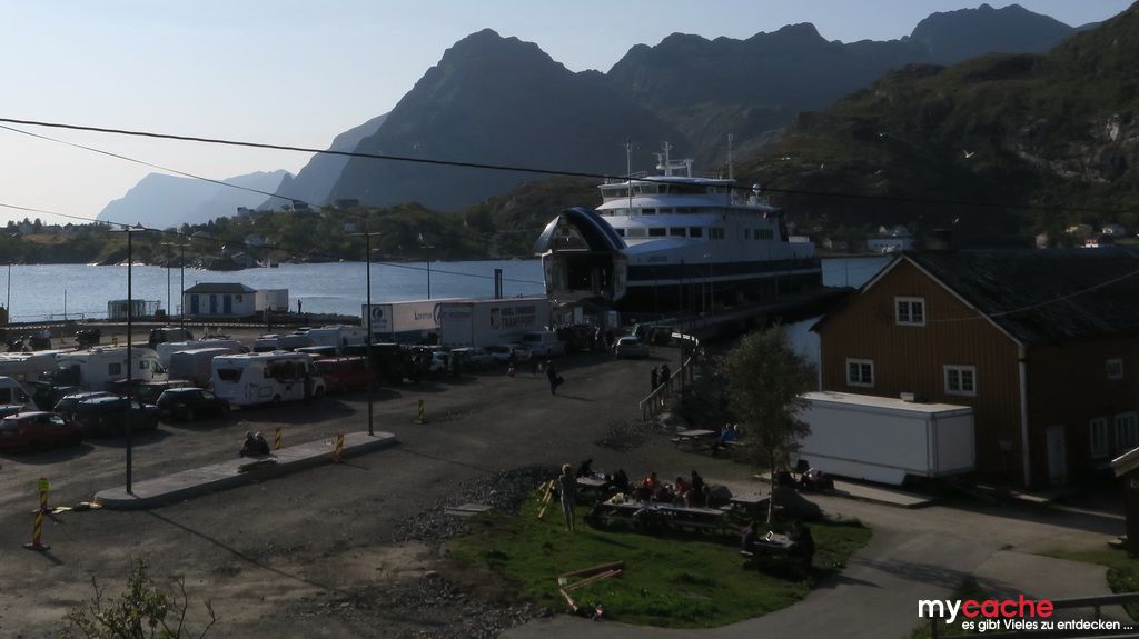 Nun geht es auf den zweiten Abschnitt der Lofoten Achterbahn über unzählige Brücken, Tunnel und schmale Straßen entlang der Fjorde. Wir fahren bis zur südlichen Spitze nach Moskenes und nehmen die Nachmittagsfähre nach Bodo. Die Überfahrt genießen wir bei Sonne an Deck, da die Norweger genauso schlimm sind wie alle anderen und sämtliche Sitzplätze mit ihren Utensilien blockieren. (170 km)