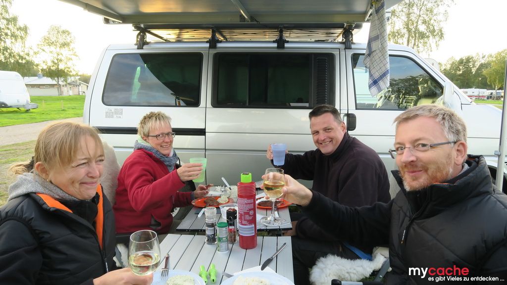 Unser letztes gemeinsames Frühstück zu siebt, fünf Zweibeiner und zwei Vierbeiner. Nun ist packen angesagt und es ist Zeit aufzubrechen. Wir nehmen Kurs Richtung Norden. Unser Nachlager schlagen wir in Vadstena am Ostufer des Vättem auf. (482 km)
